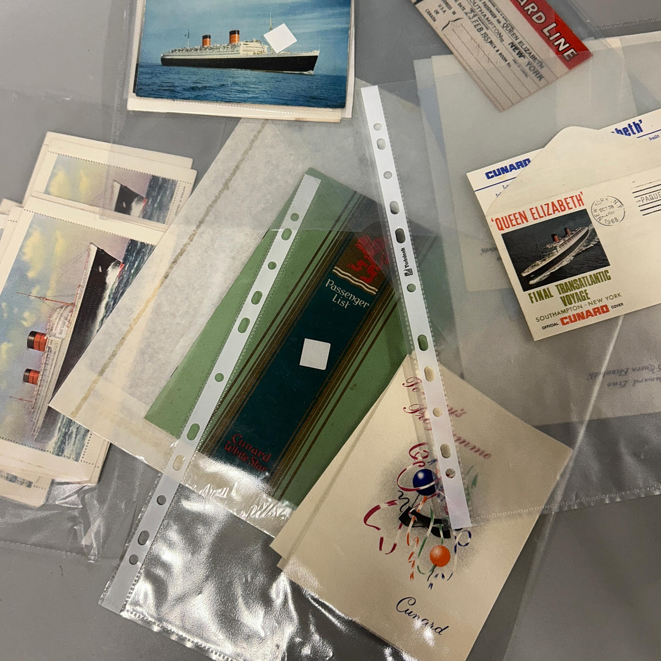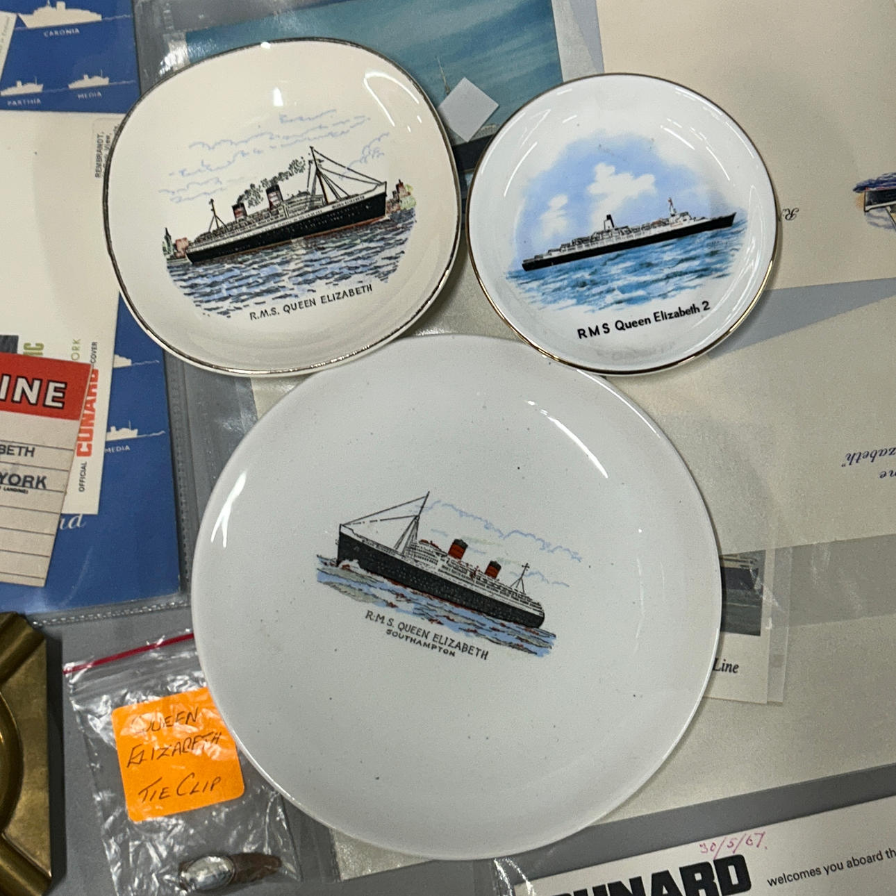 A quantity of RMS Queen Elizabeth (Launched 1938) related souvenirs, approximate volume 33 x 24 x 13cm.