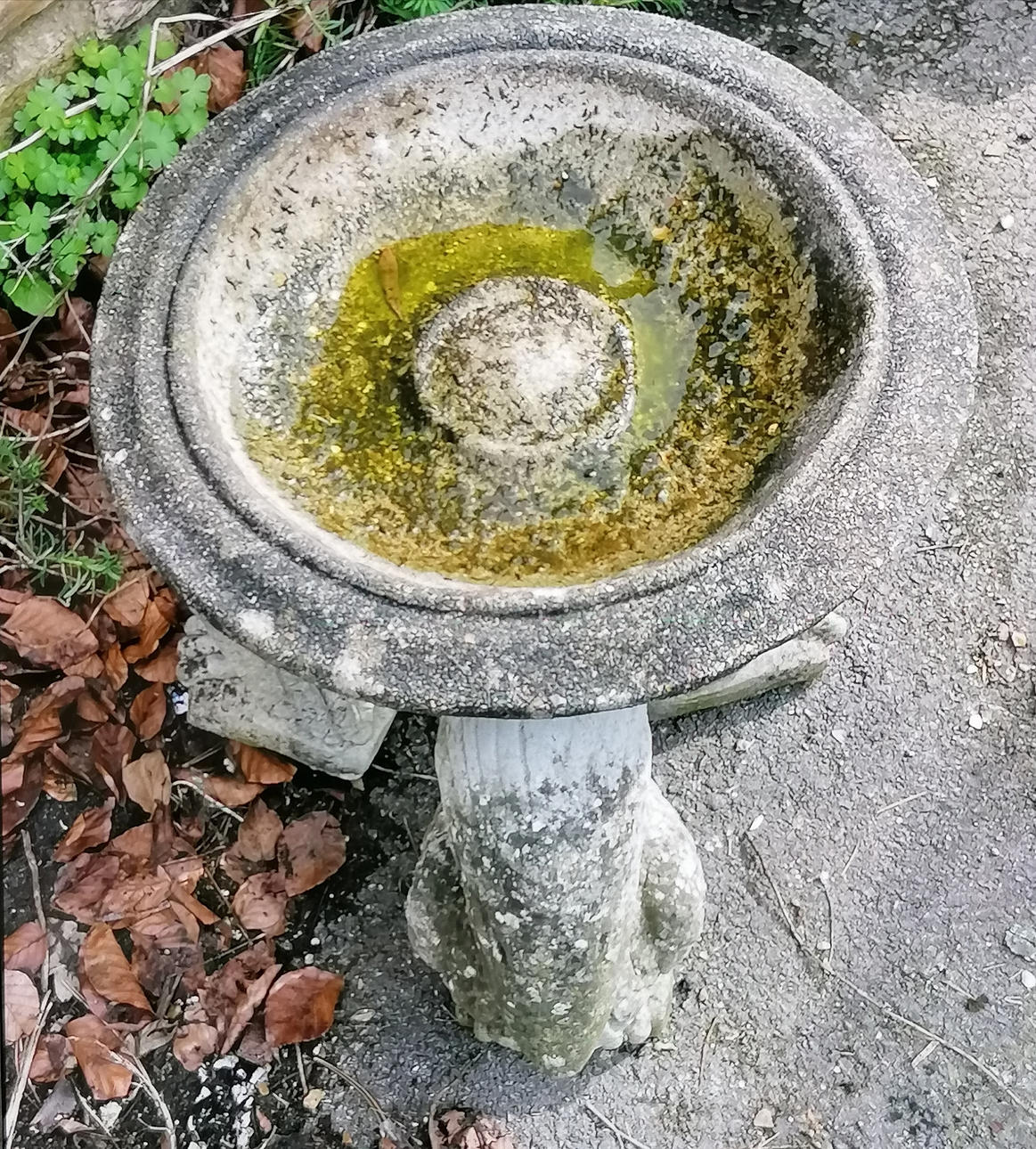 Pelican x 3 figural birdbath total height 49cm x 45cm diameter.
