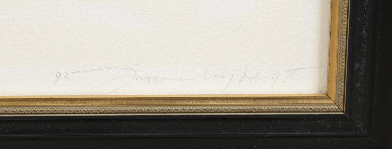 Study of two deer/zebra, numbered 19/200, signed, framed and glazed, 76cm wide, 65cm high including frame.