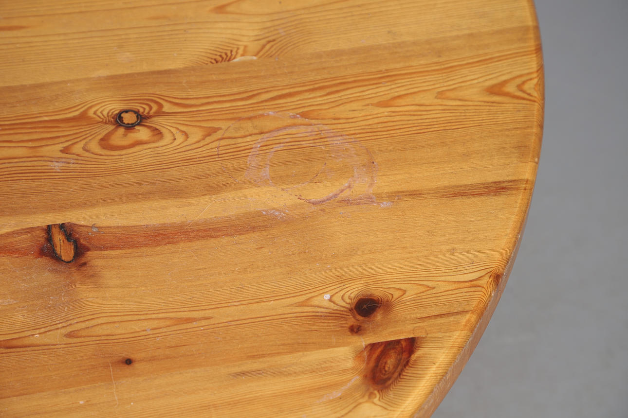 the circular top on tapering supports, 118cm diameter x 46cm high.