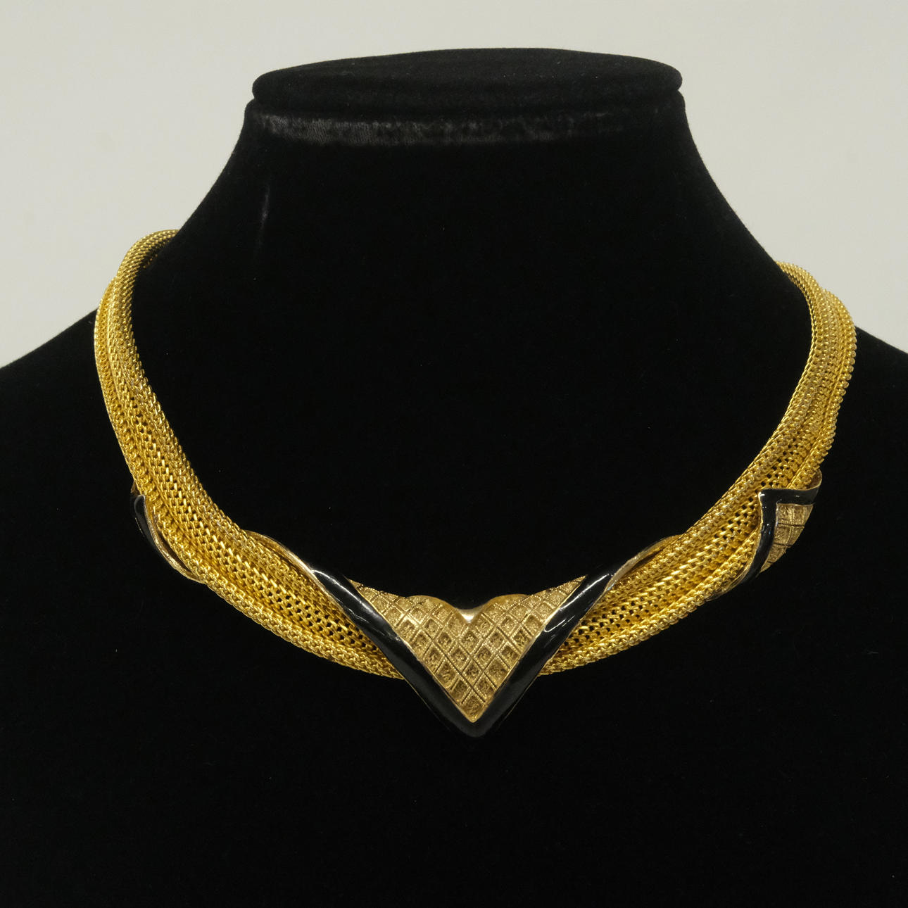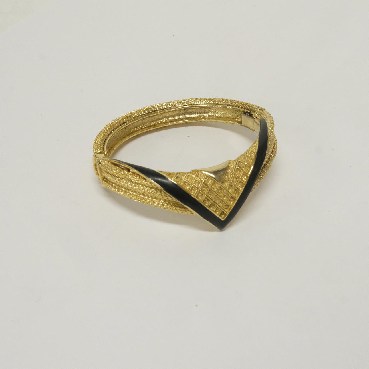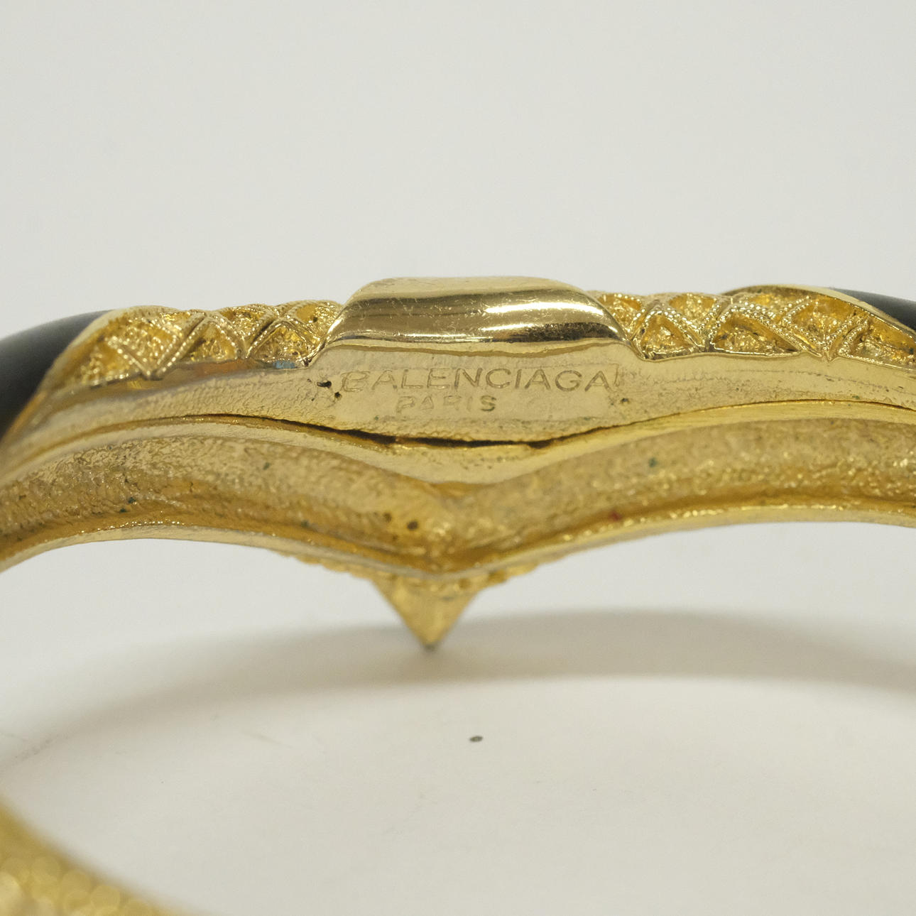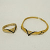 Gold-colored with details in black, necklace, diameter 13 cm, bangle, diameter6, cm, marked Balenciaga Paris.