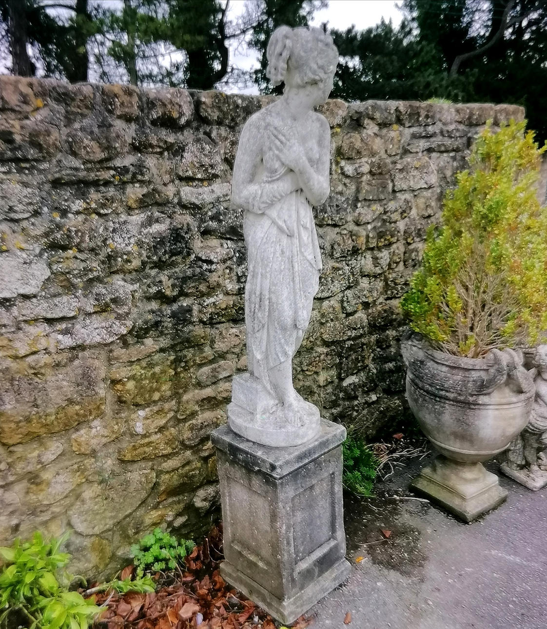 Composite marble statue of Venus bathing on a square plinth total height 185cm.
