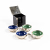 Including teak, silver plate, largest dimensions 12 x 8.5 x 5.5 cm.
