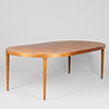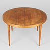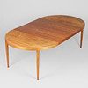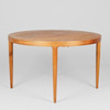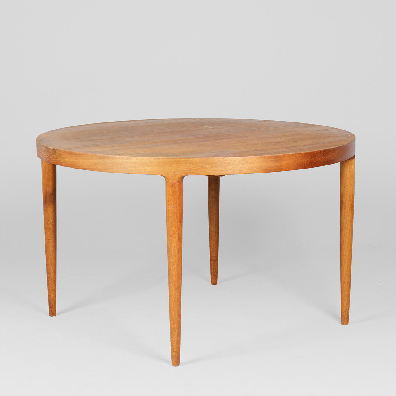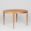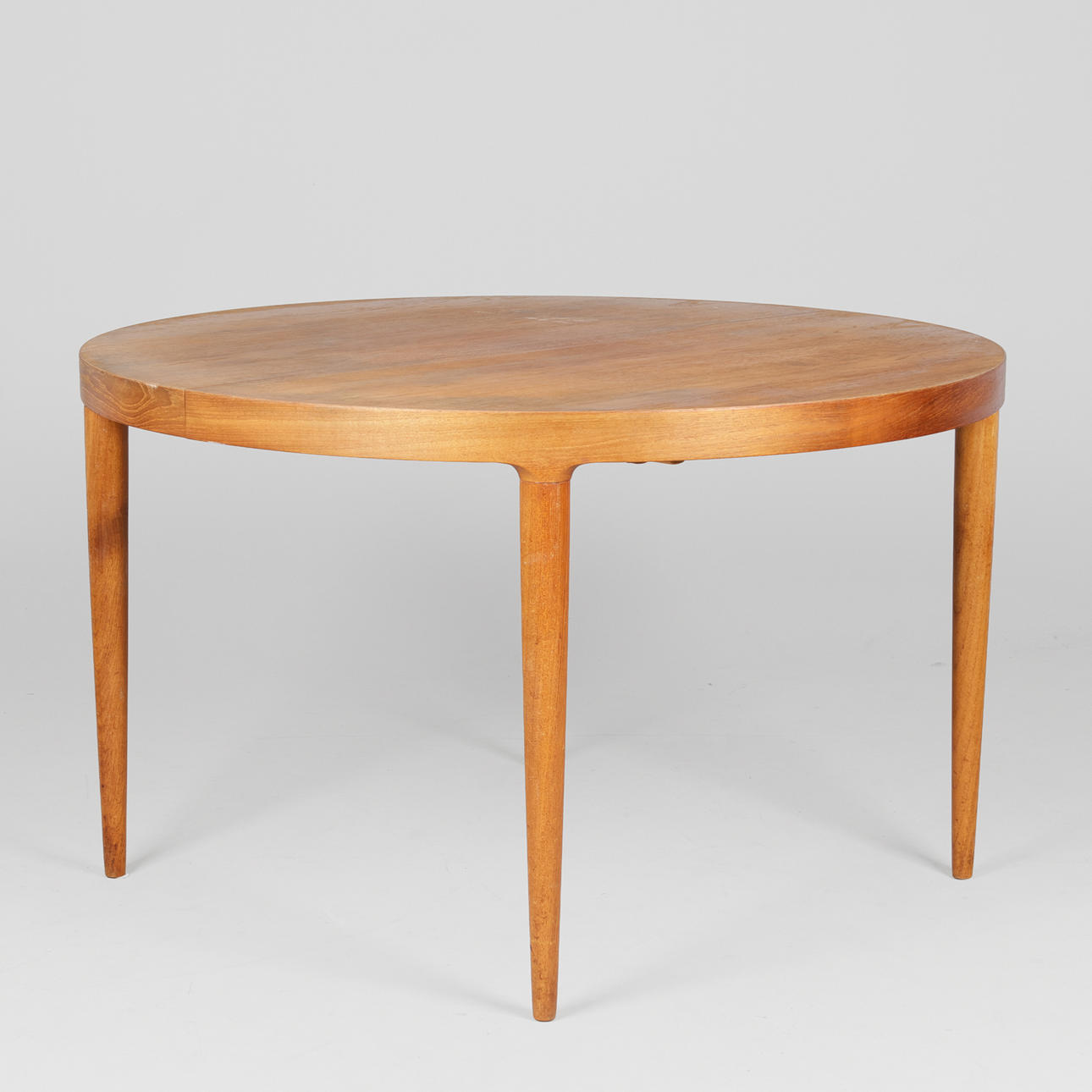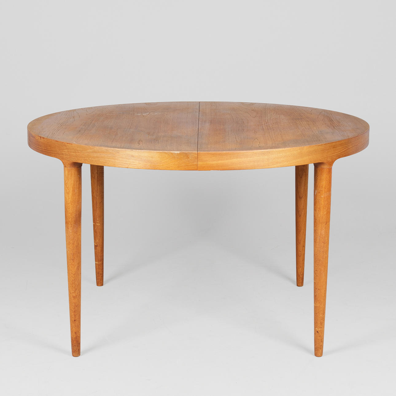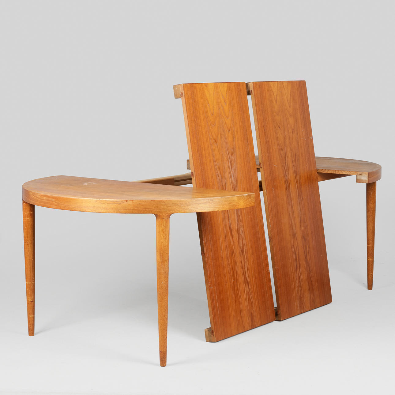 5020574. Circular teak dining table with pull-out and two additional plates, Skovmand & Andersen, Denmark, circa 1960s (1+2).