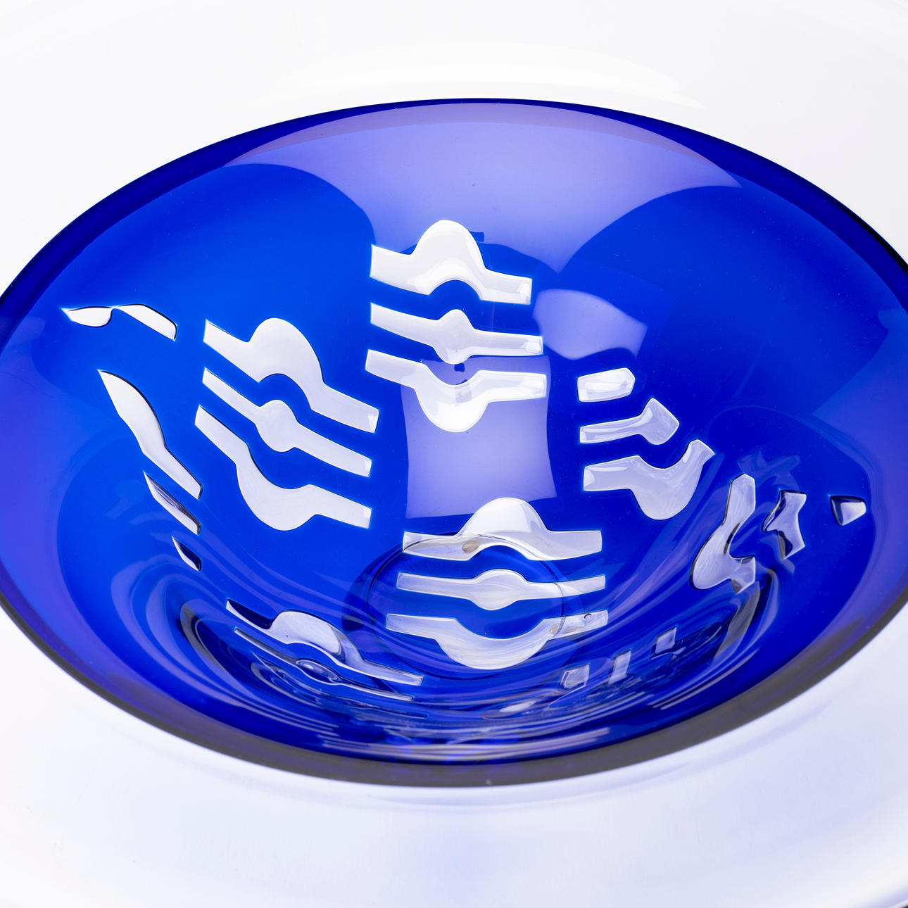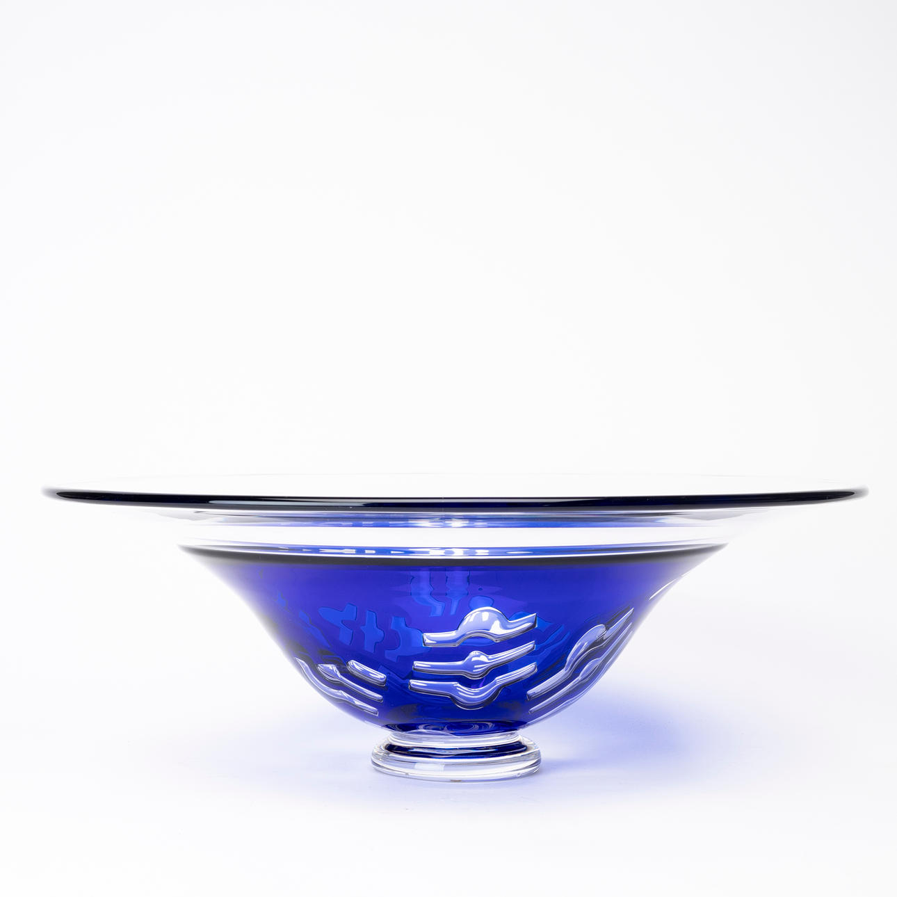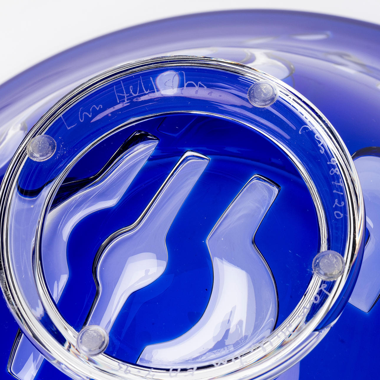 Clear and blue glass with abstract decor, diameter approx. 46 cm.
