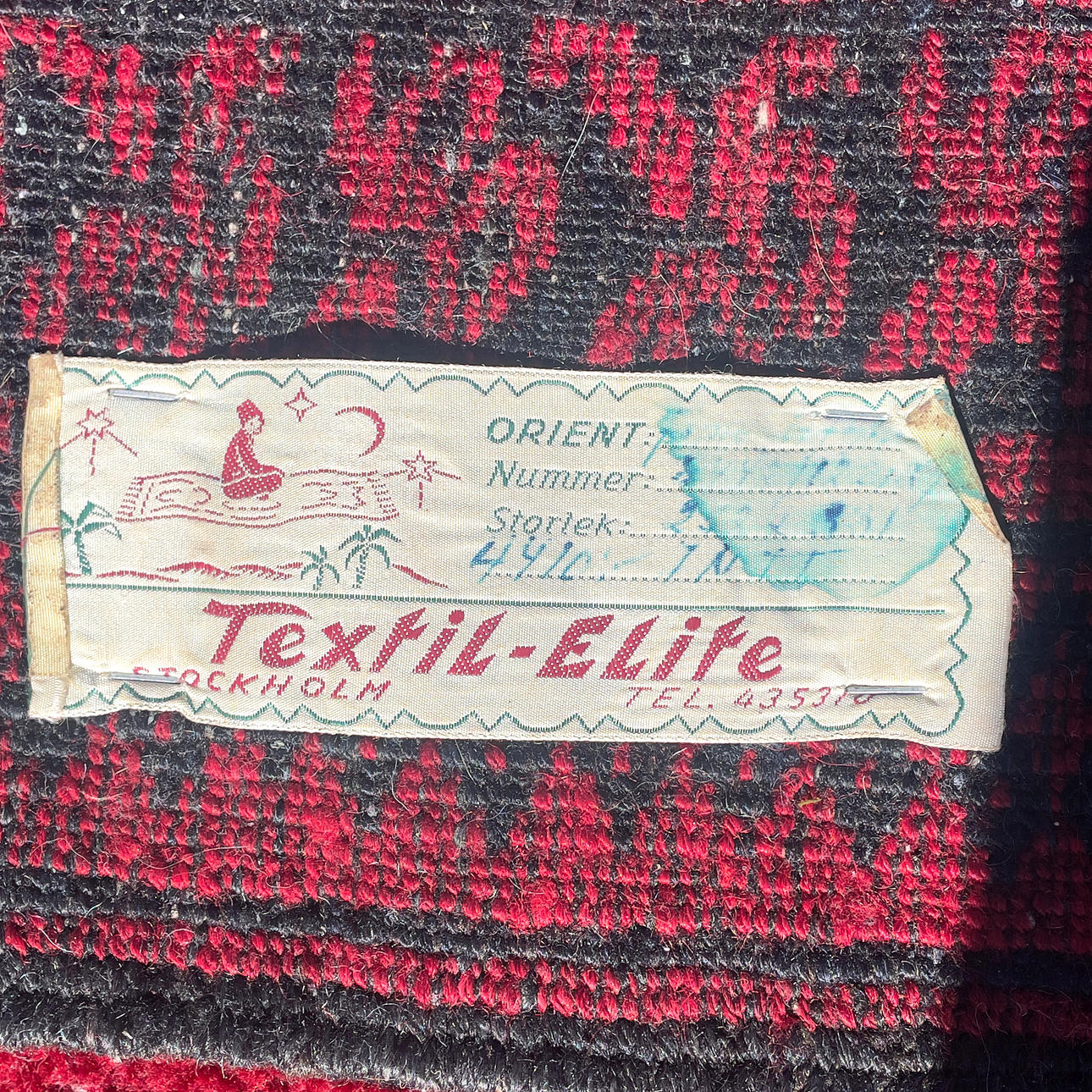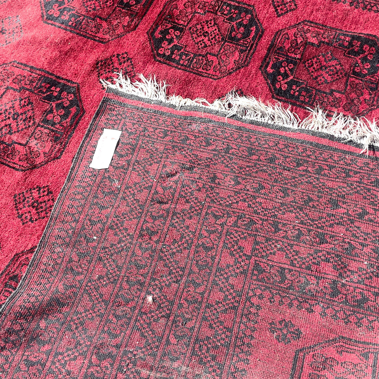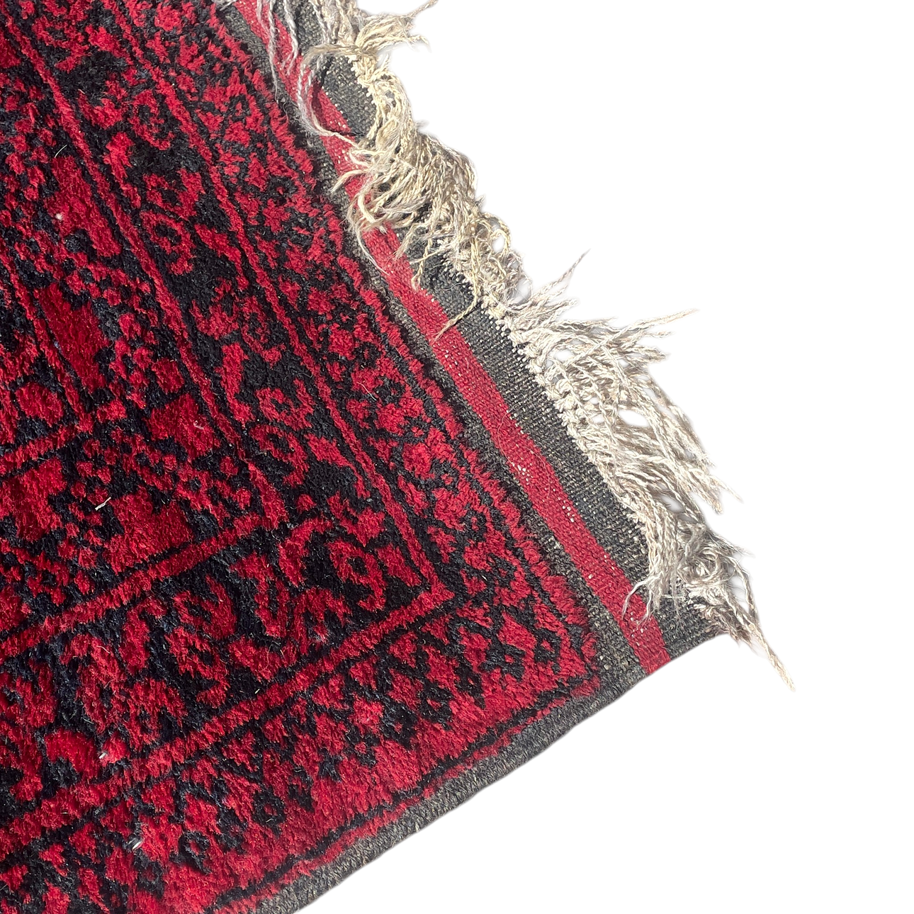 Wear from use, stains, fringes missing.