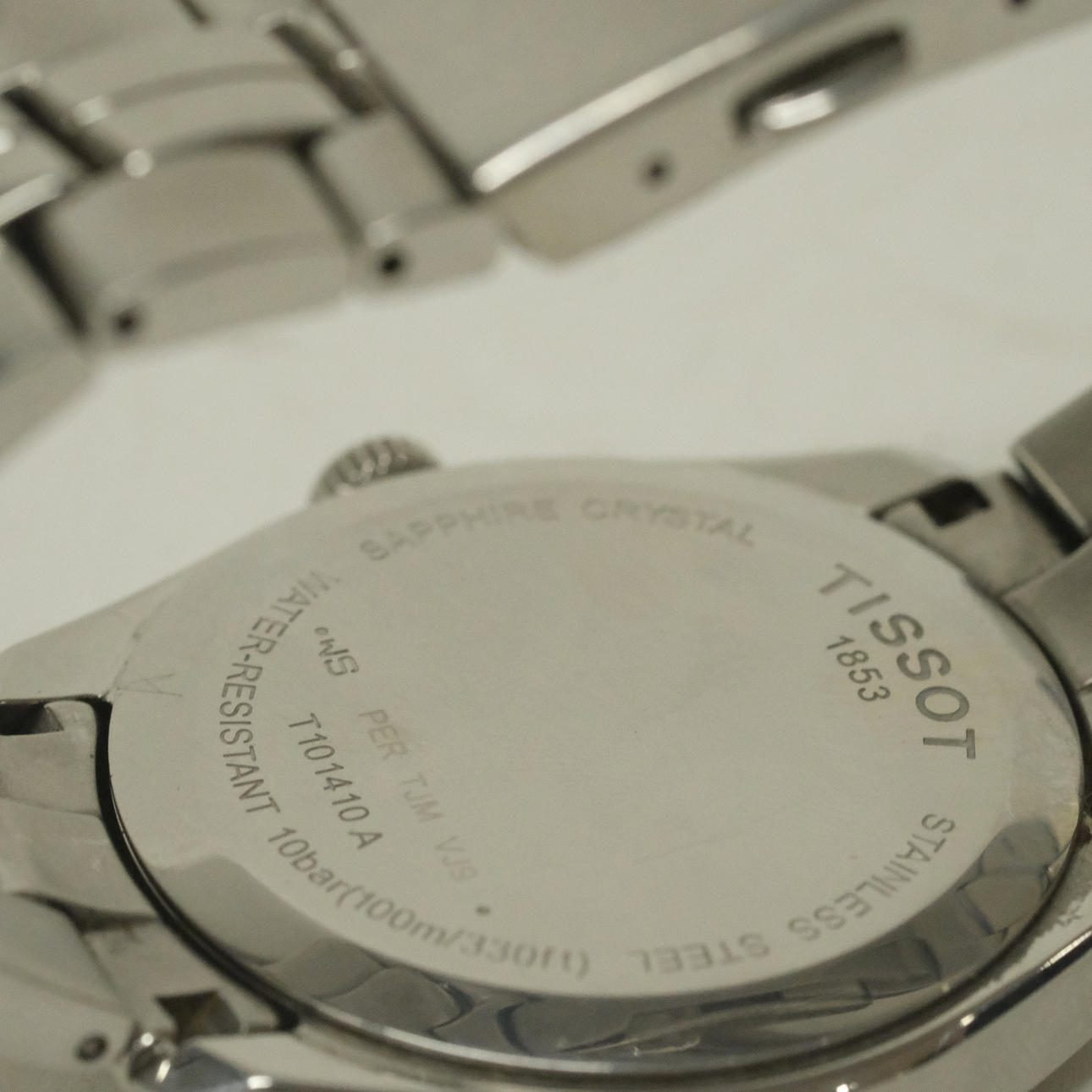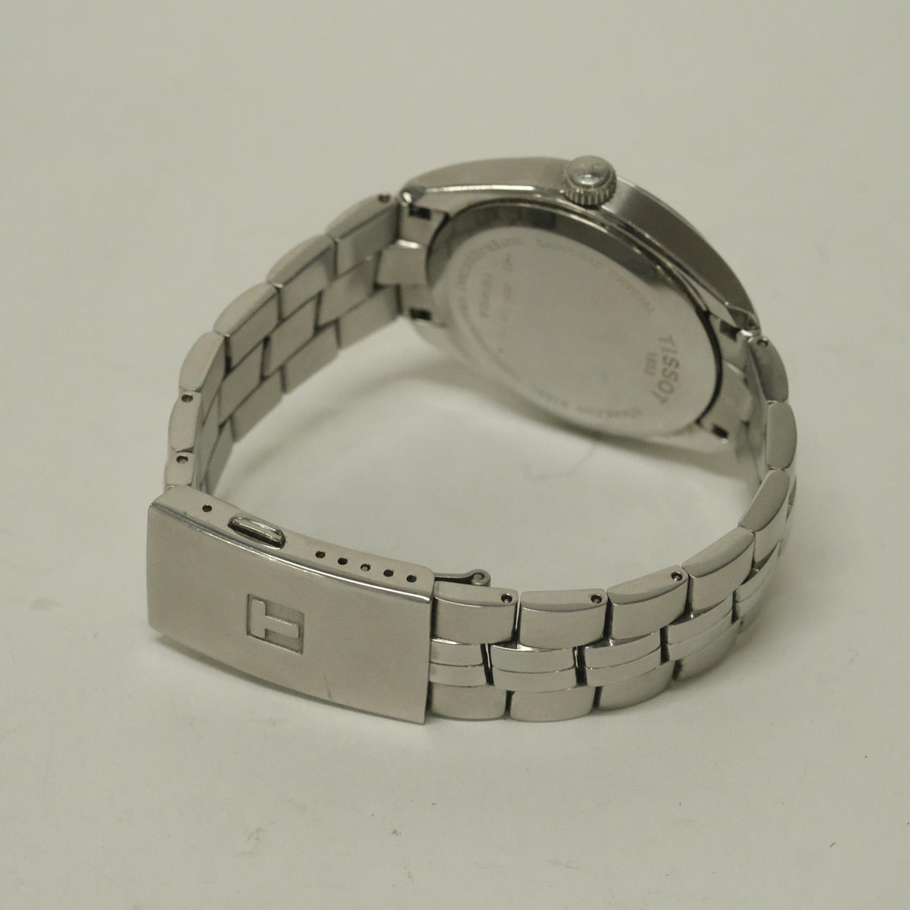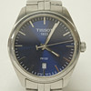 Men's quartz watch, Tissot 1853, PR 100, date, brushed steel, blue dial, diameter 3.8 cm.