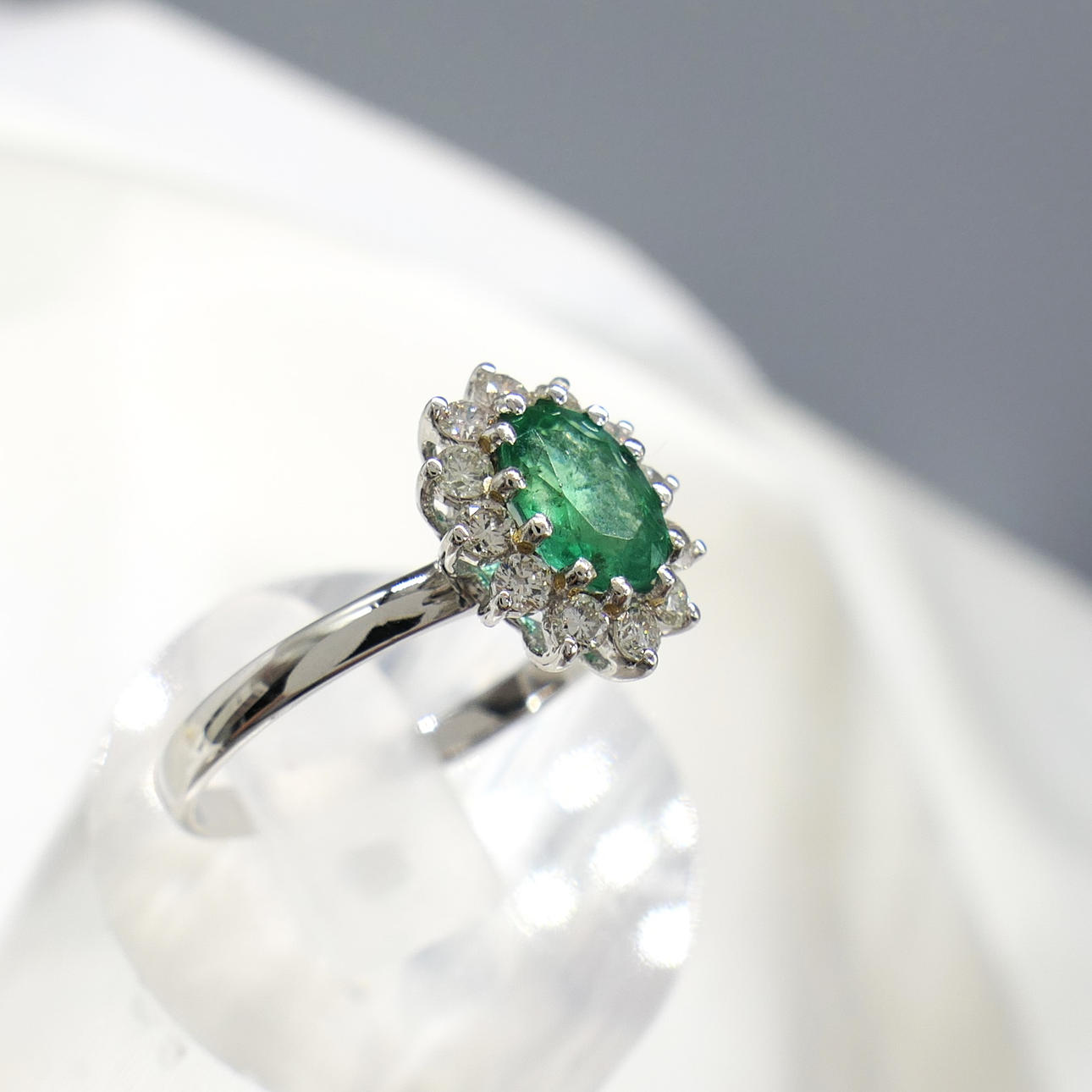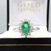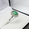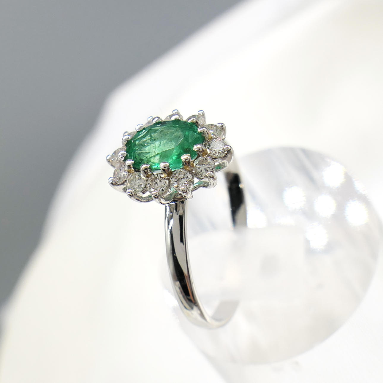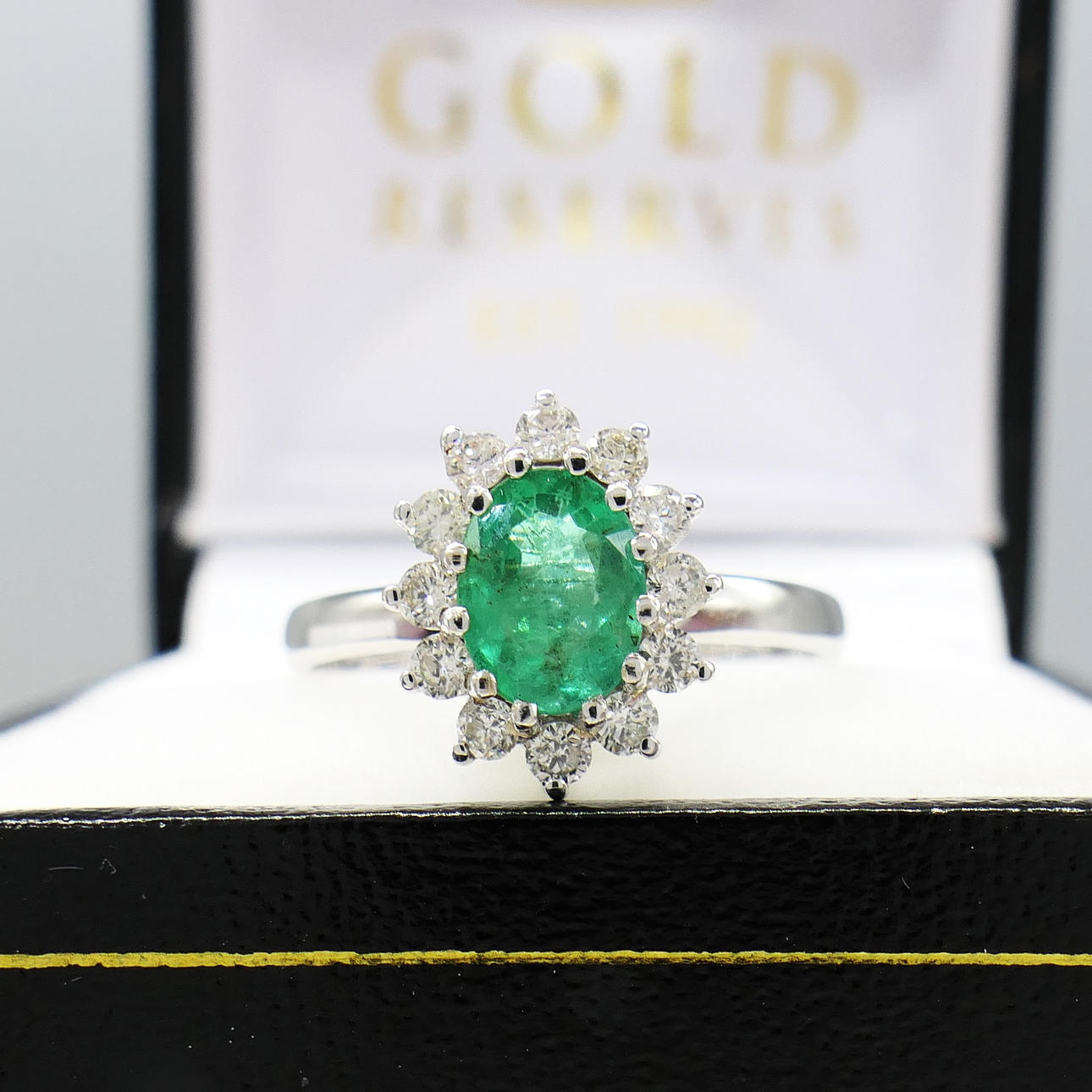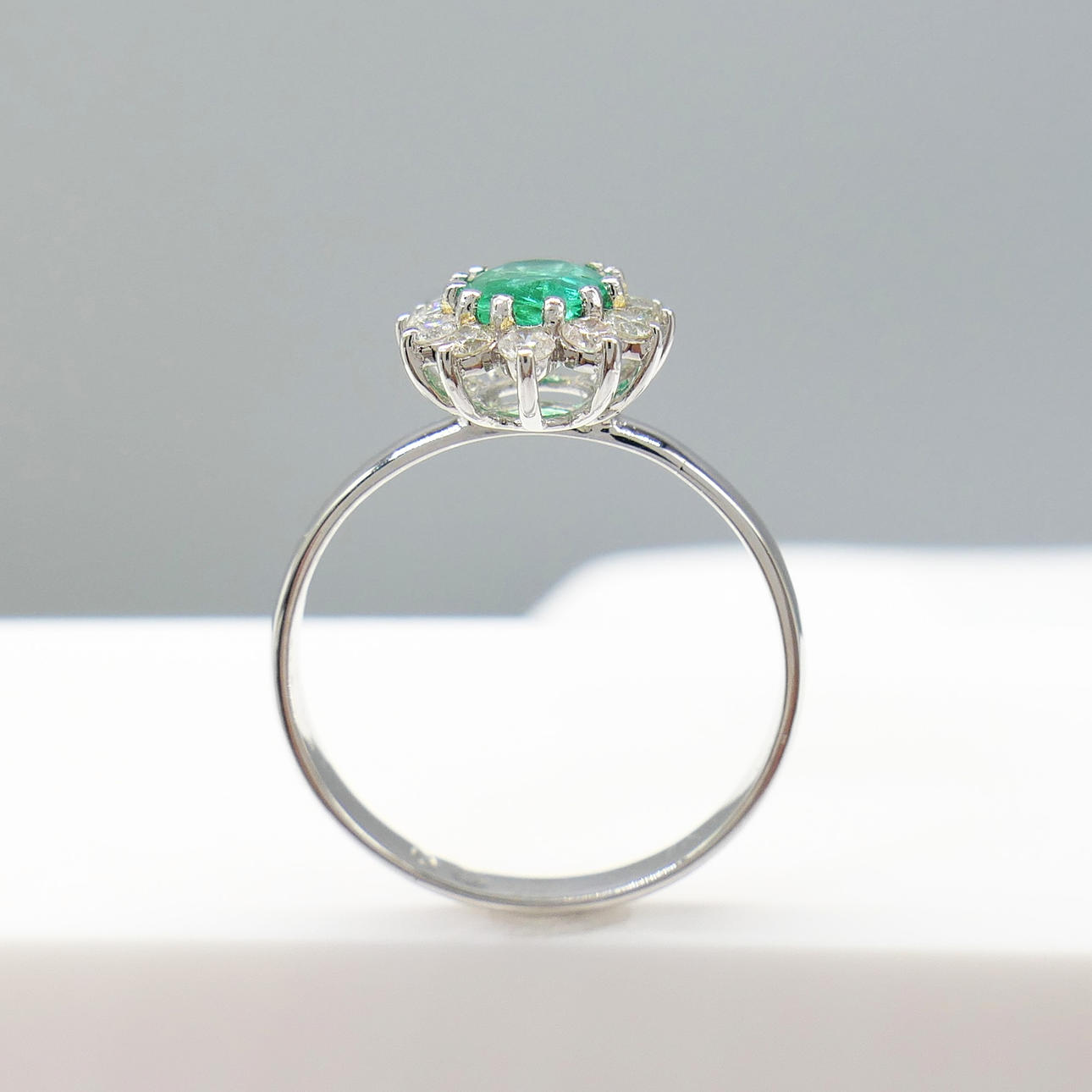 A certificated 18k white gold emerald and diamond cluster ring, with gift box