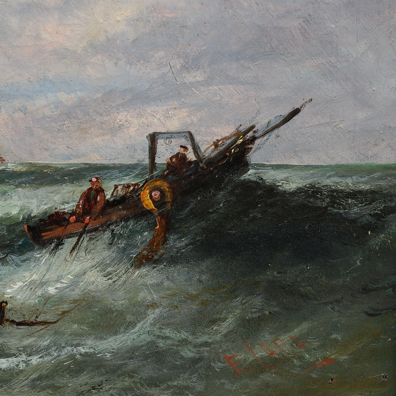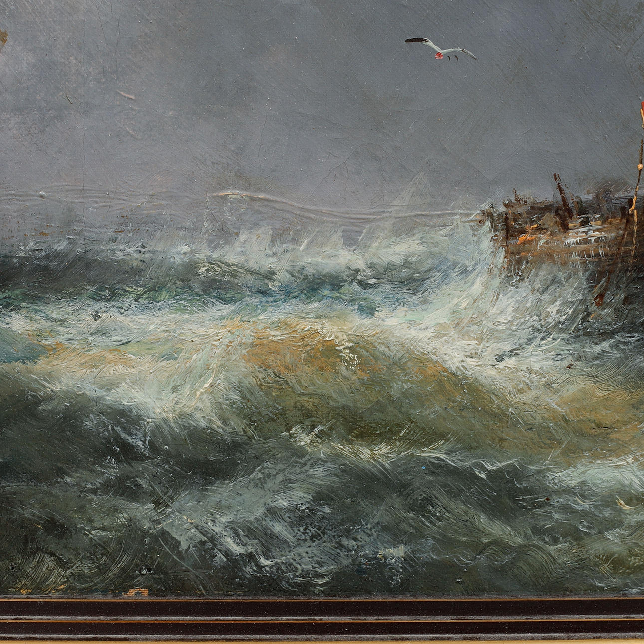 5020669. OIDENTIFIERAD KONSTNÄR. Shipwreck, oil on canvas, signed.