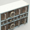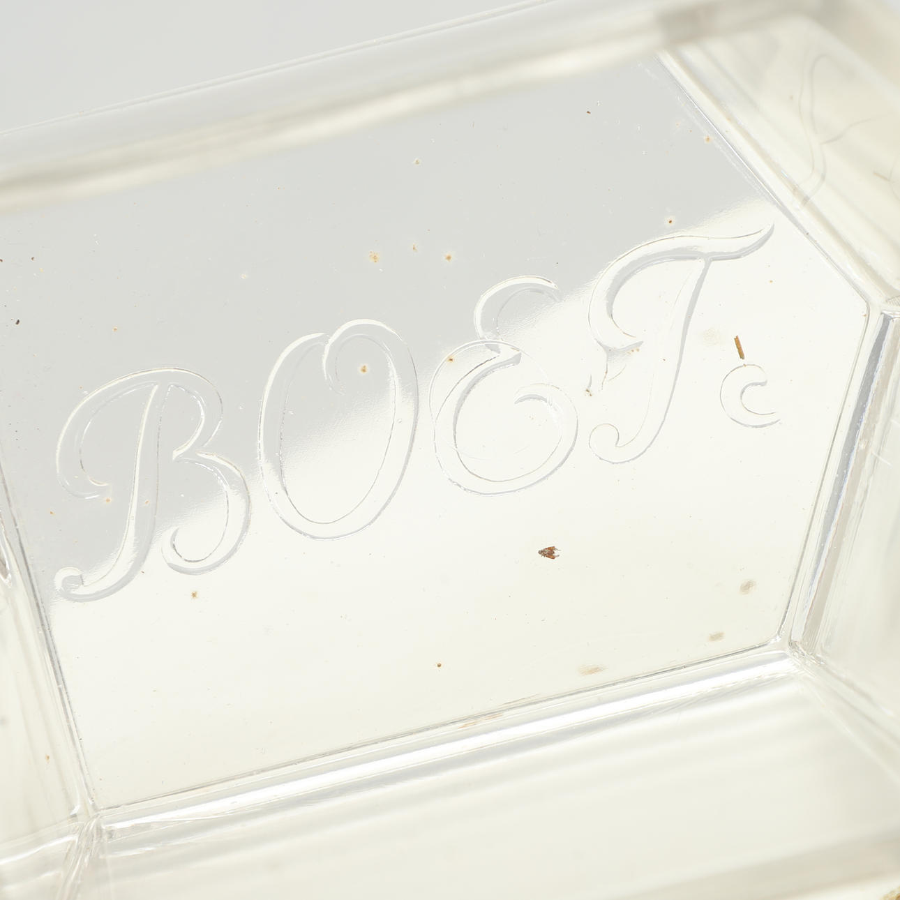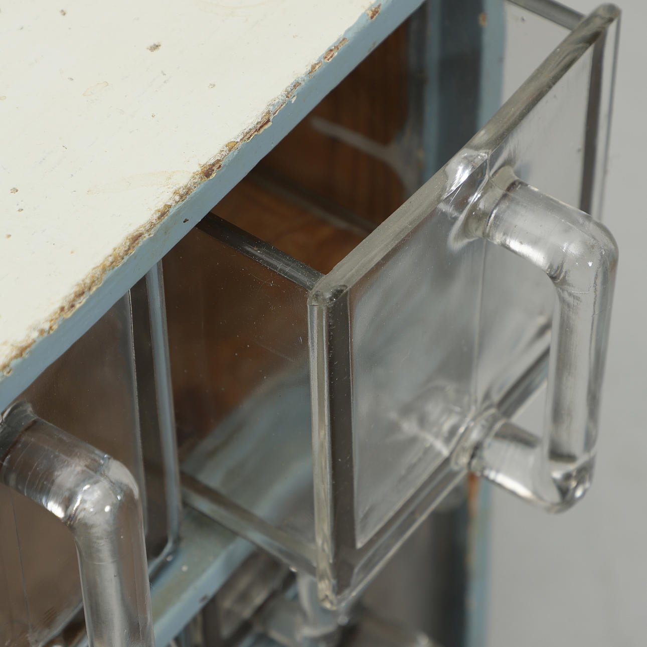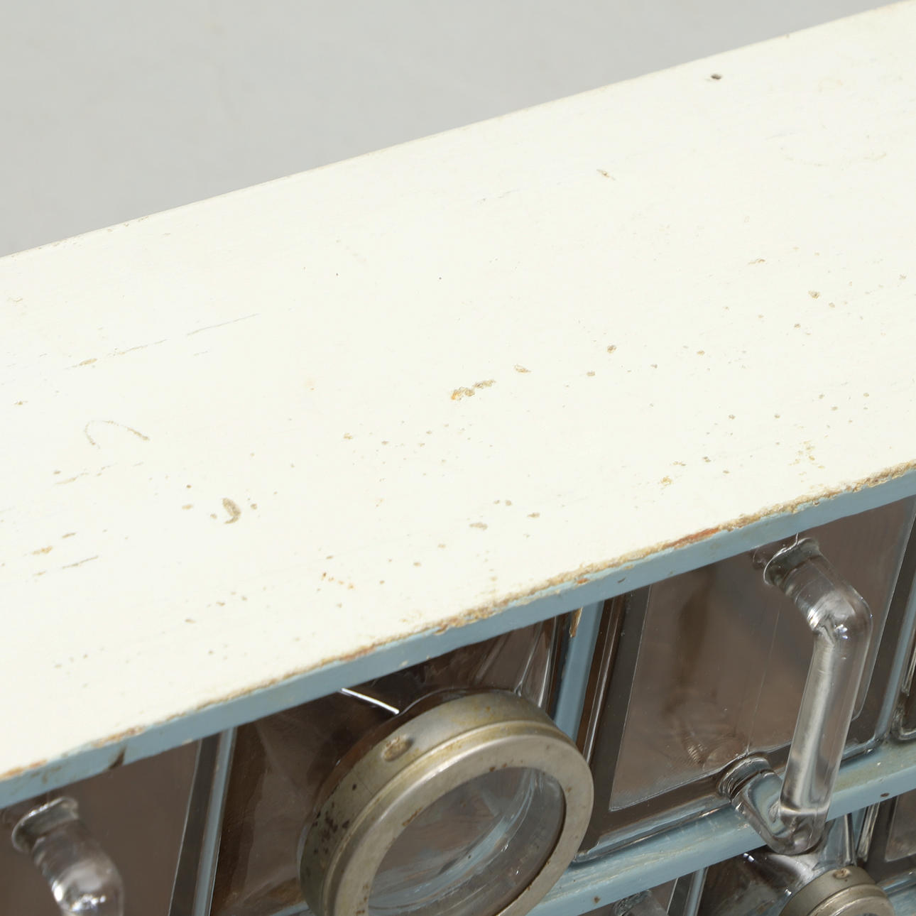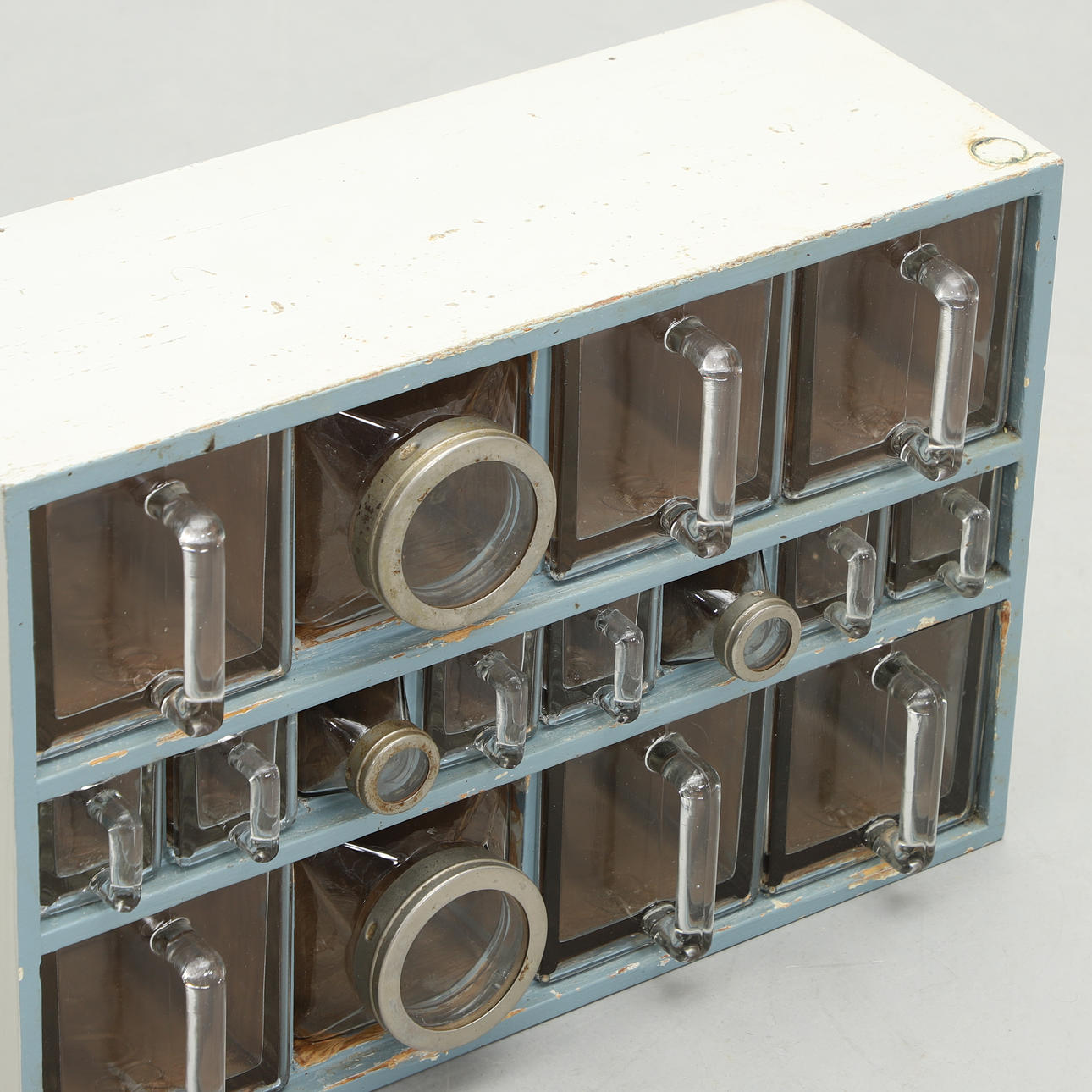 Cabinet in lacquered wood. The cabinet is label marked BO. Scoops and jars of glass, marked BOET. For wall mounting vertically or horizontally. Width 51, depth 21, height 35 cm.