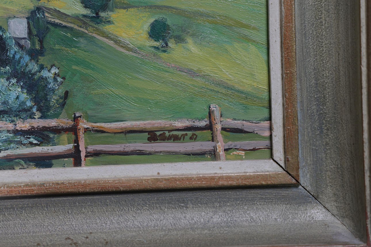 Mountain scene loose in frame, all in good general condition.