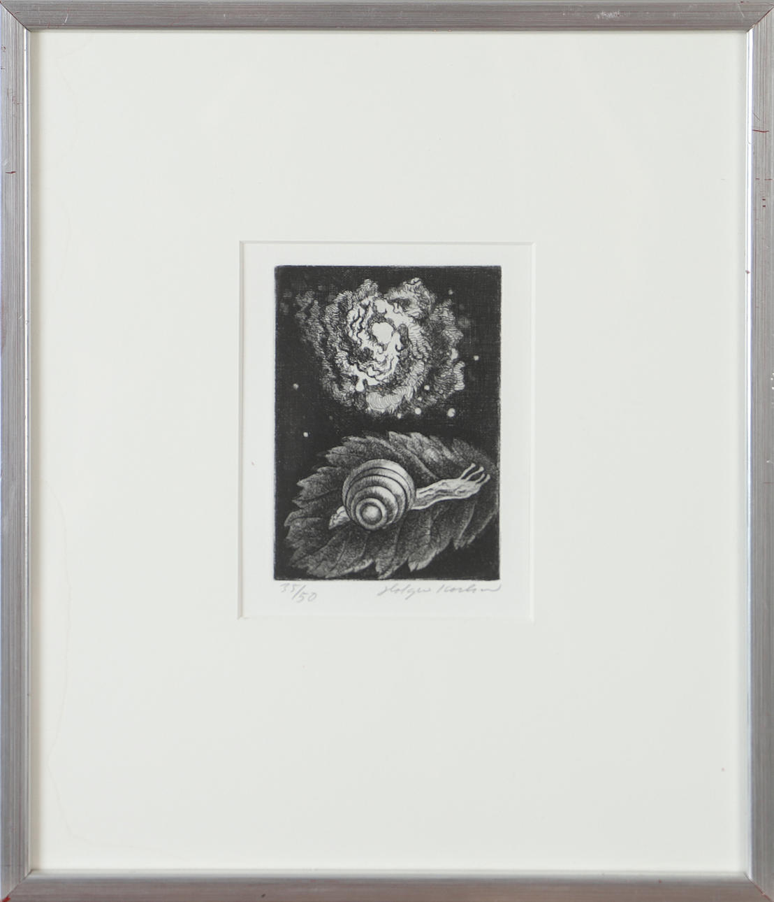 5021035. HOLGER BÄCKSTRÖM. Shell and spiral galaxy, etching, signed.
