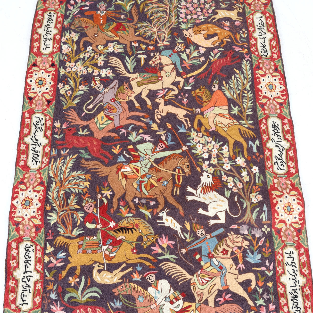 5021189. EMBROIDERY, probably Persia, hunting motif.