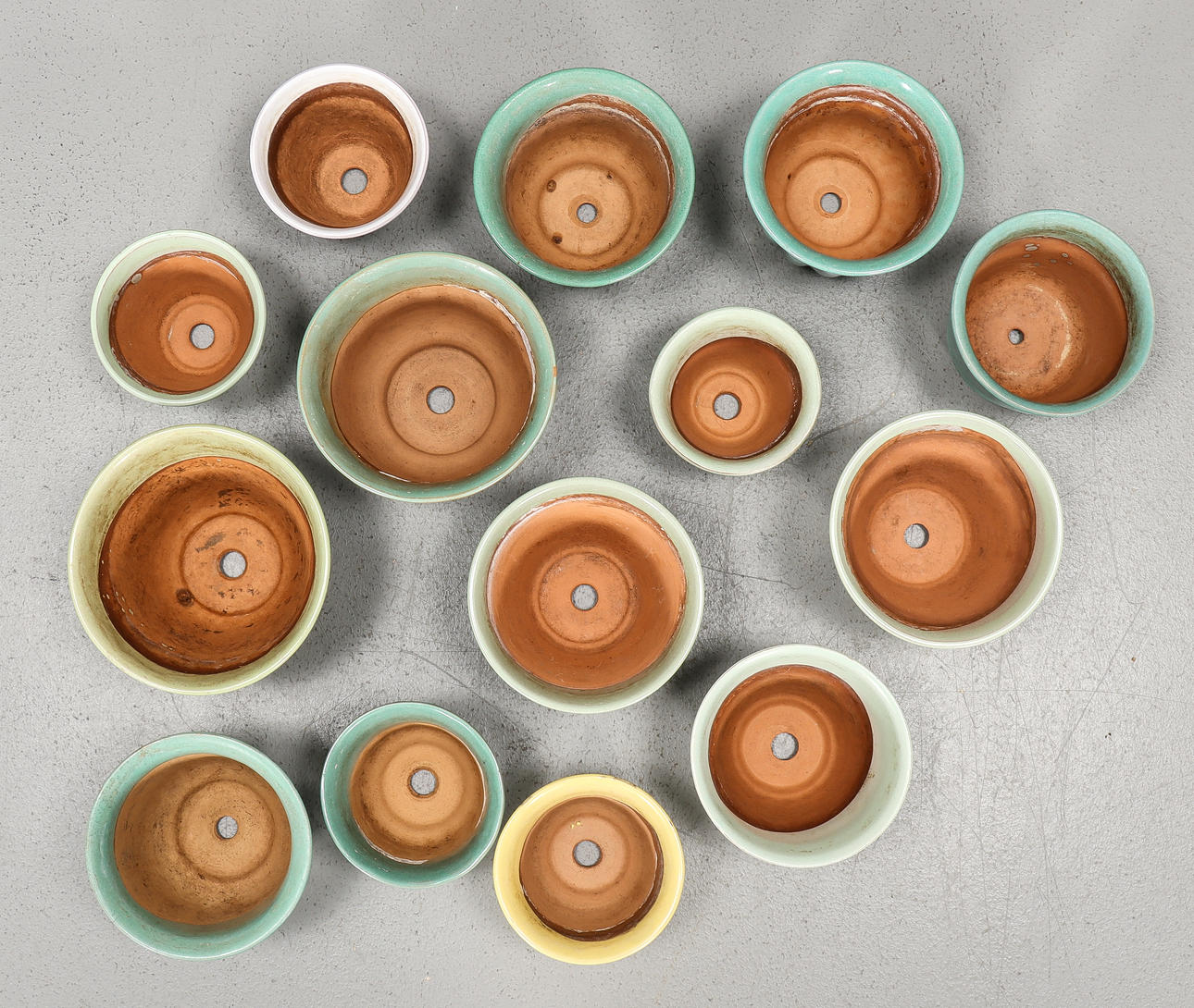 5021231. EARTHENWARE FLOWERPOTS, 1950's, 14 pieces.