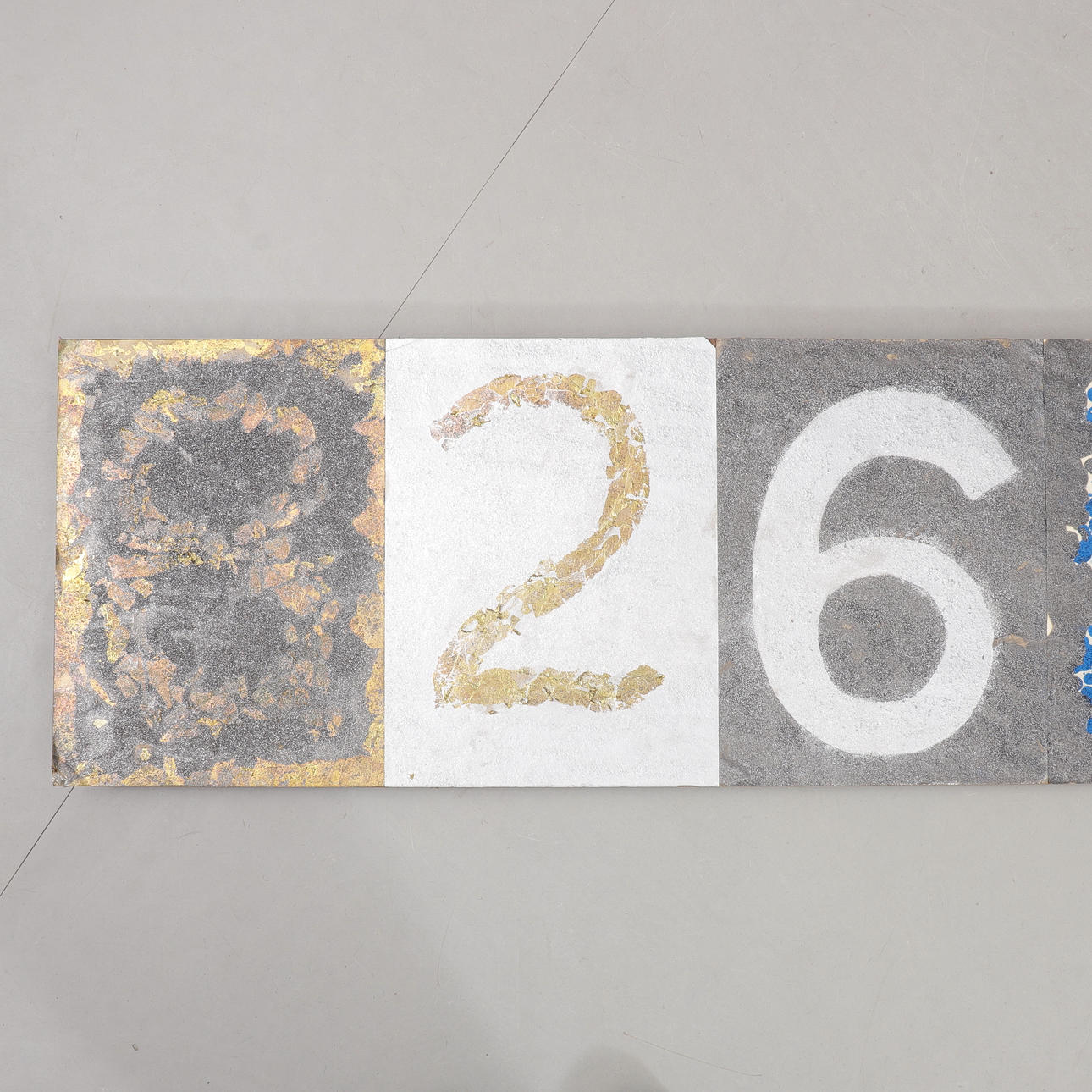 5021325. HANS BRAGE. Composition with numbers, painting on panel, signed and dated 1964.