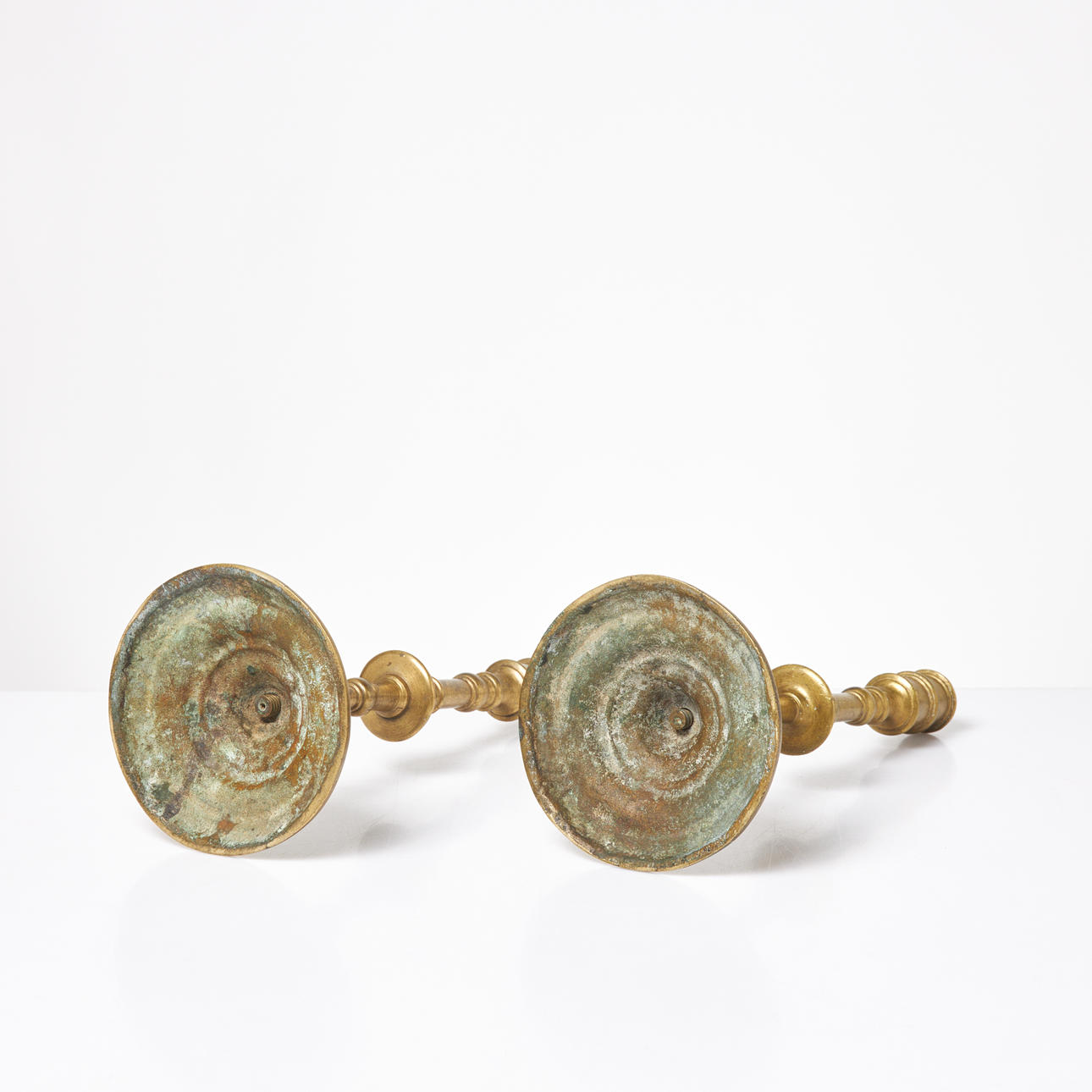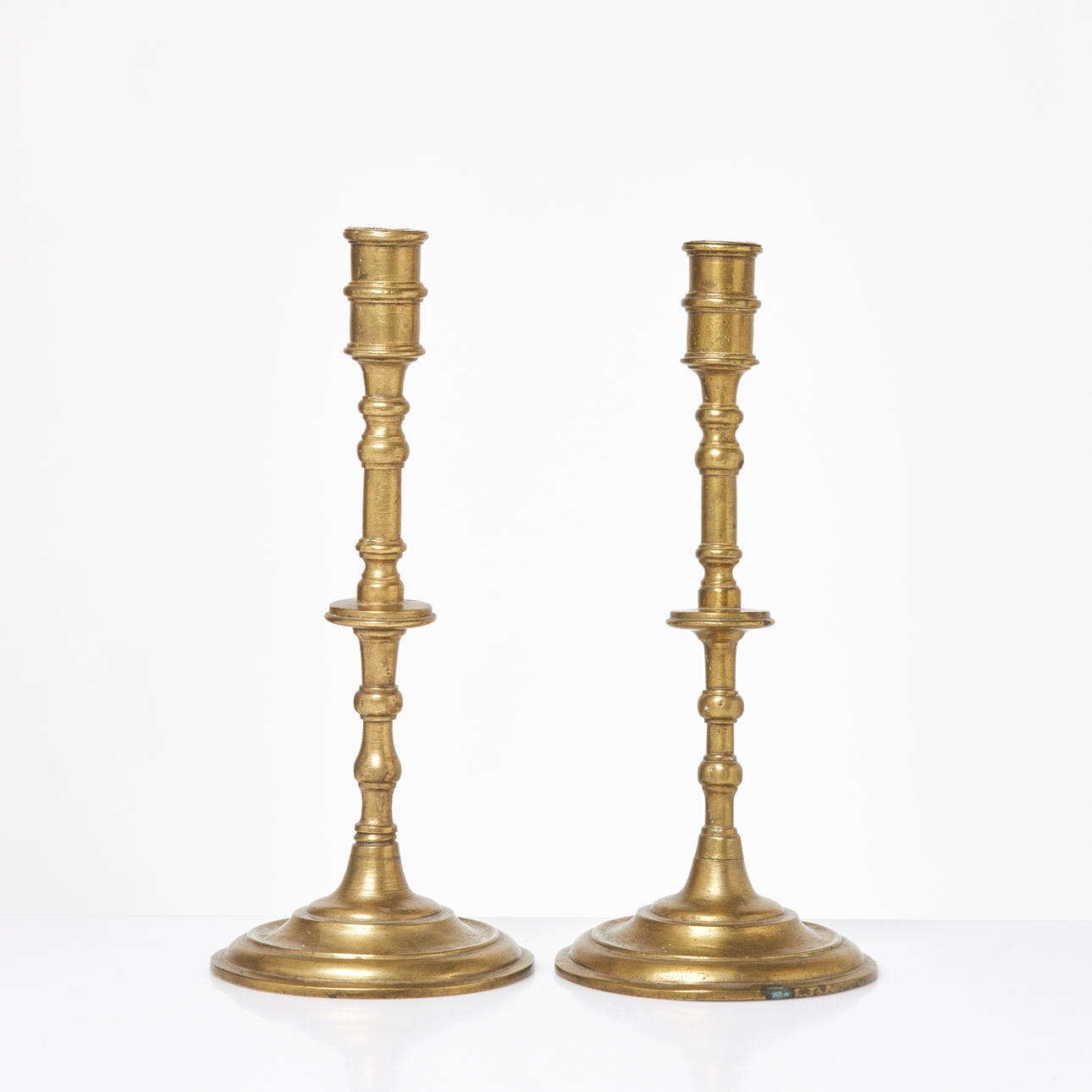 5021375. CANDLESTICKS. 1 pair, brass, 17th/18th century.