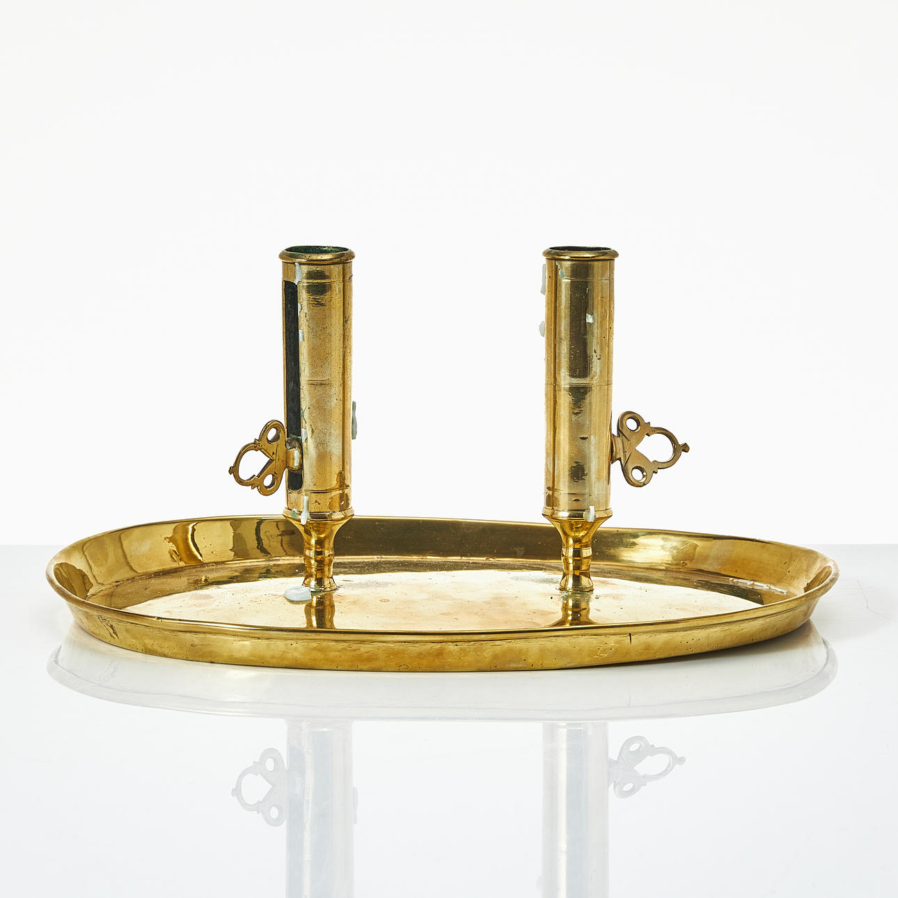 5021382. A double candlestick for two candles, brass, mid 19th century.