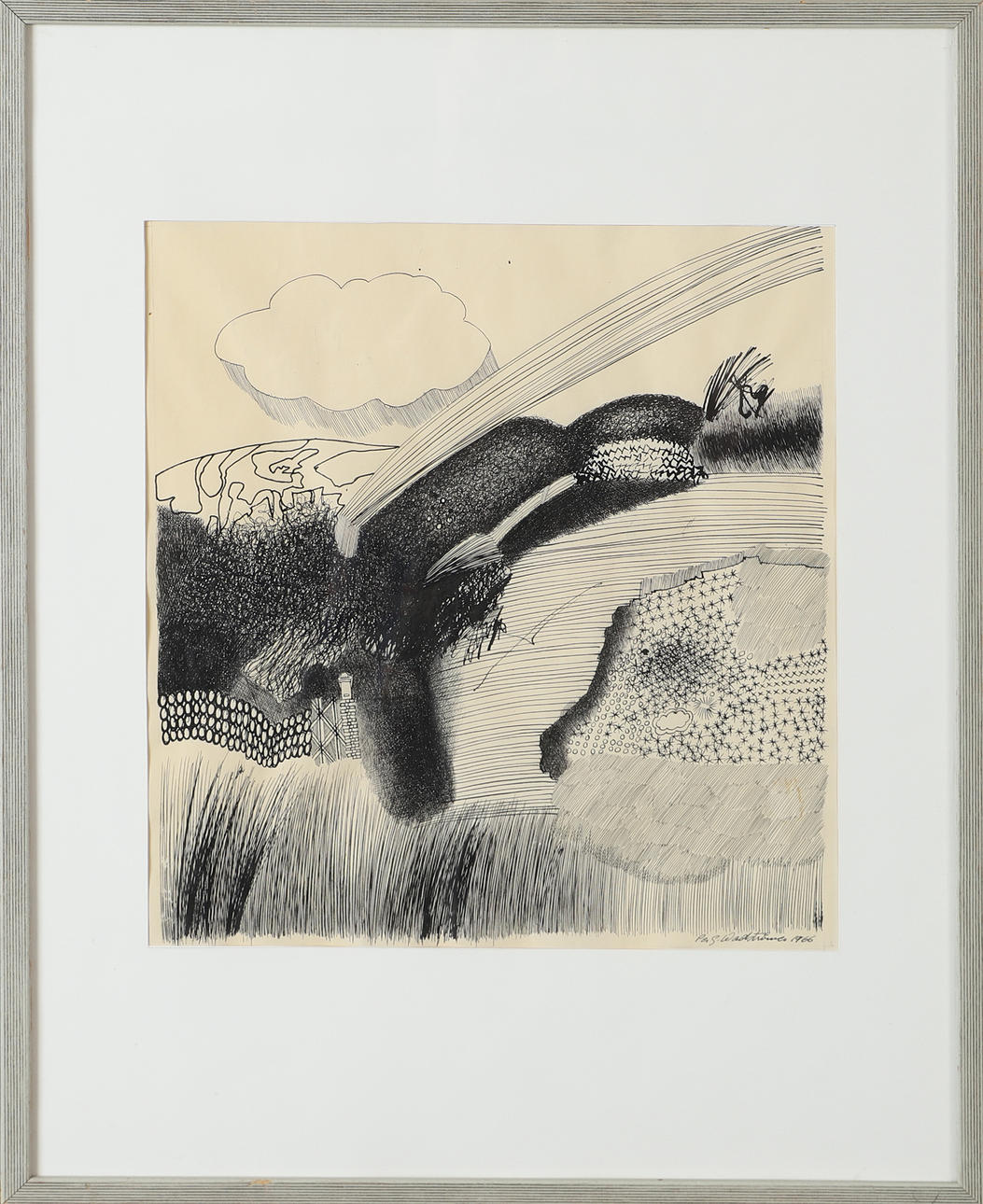 OIDENTIFIERAD KONSTNÄR. Landscape, graphic sheet, signed 1966.