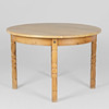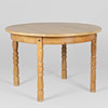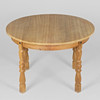 Circular dining table made of solid oak with pull-out and two additional plates. Probably made by a Danish furniture manufacturer.