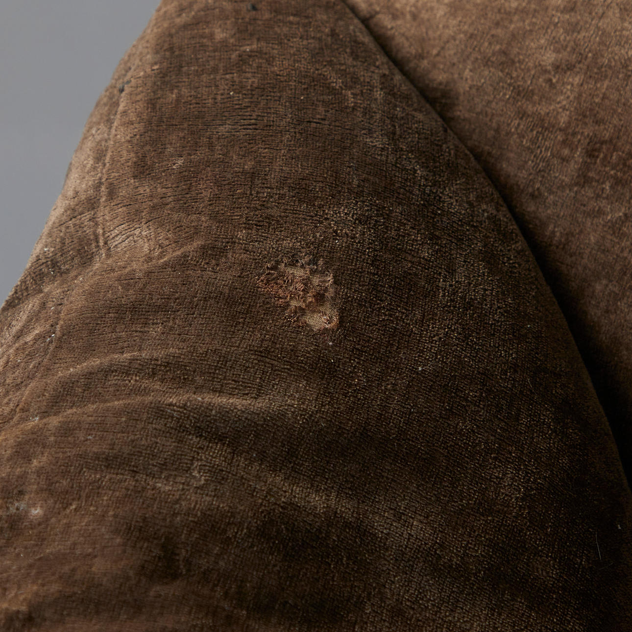 Age-appropriate signs of use and rubbing, fabric thinned and rubbed in places, partial stains.