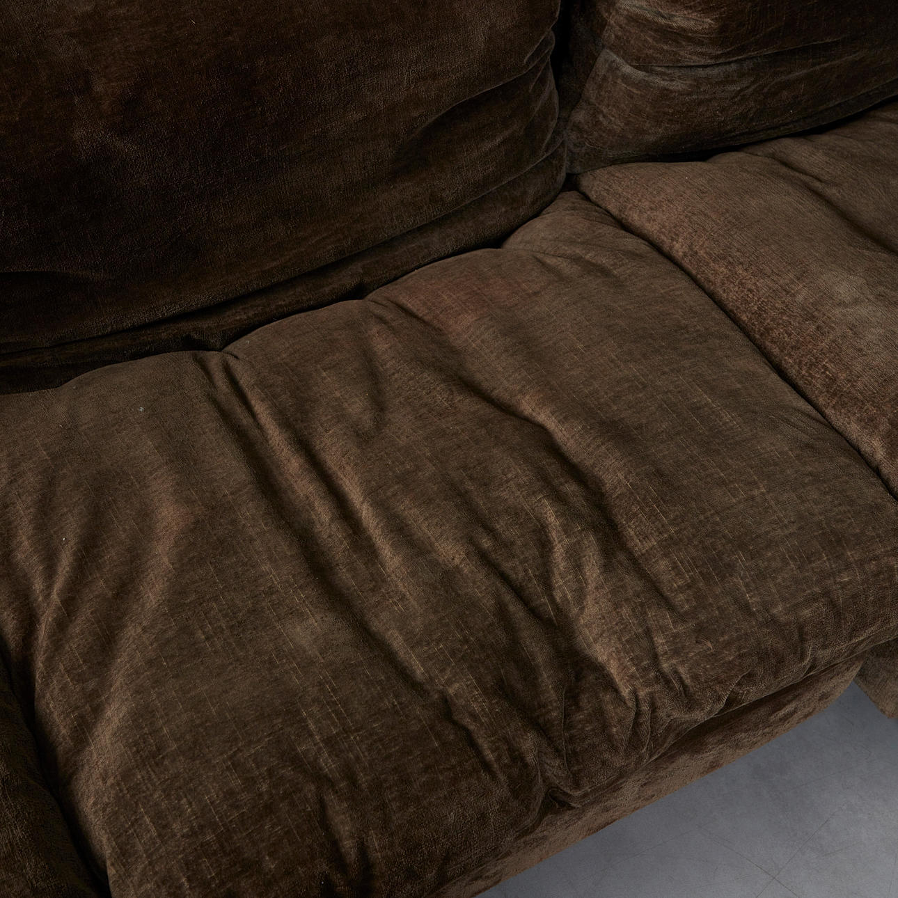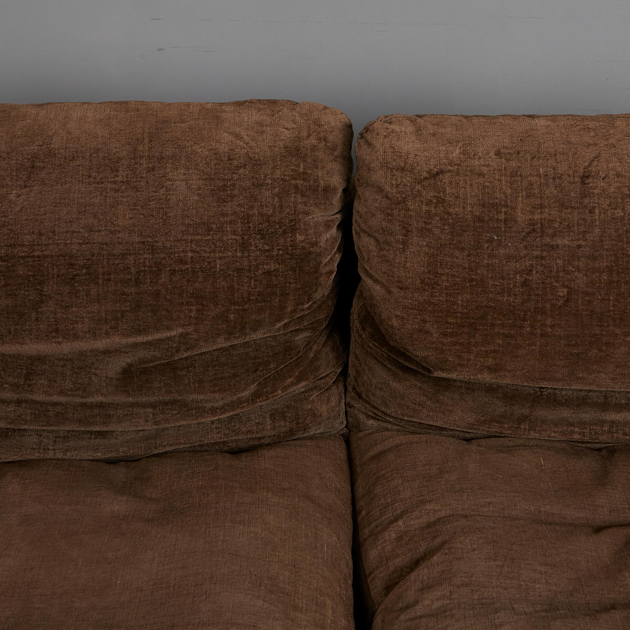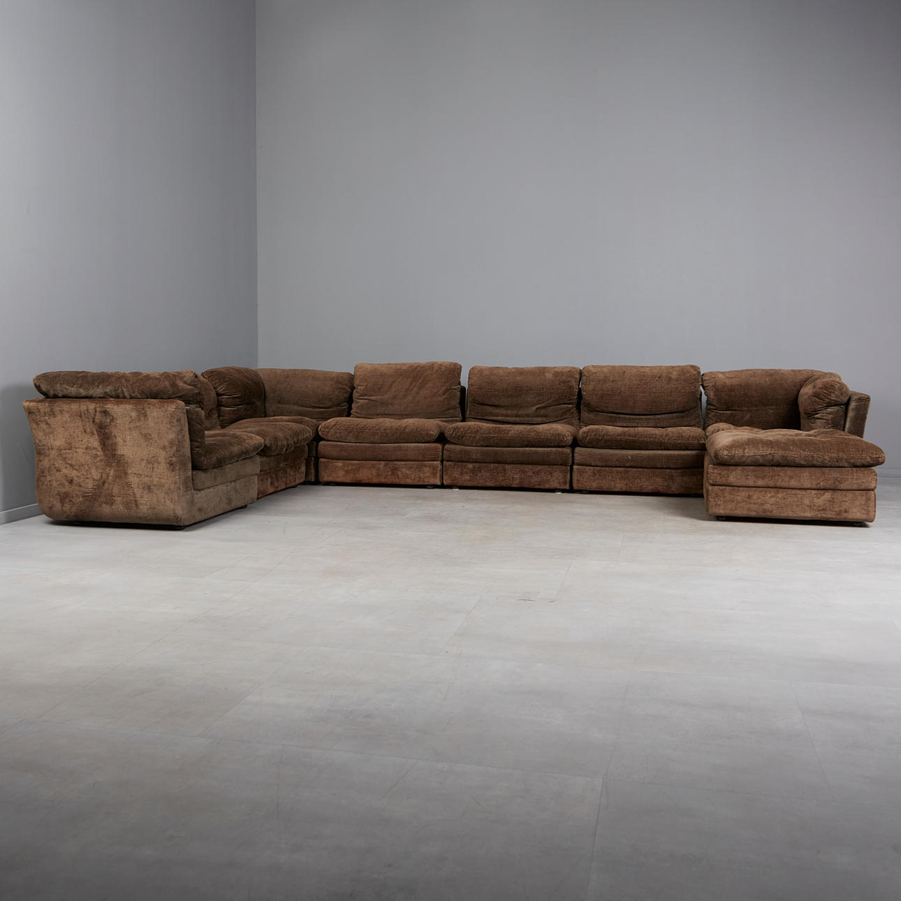 8-piece modular sofa with upholstered construction and loose seat and back cushions with brown fabric upholstery, zippered upholstery, including three corners and a footrest, black plastic protectors, each: H.68cm, seat height: 37cm, W.80cm, D.80cm (8).