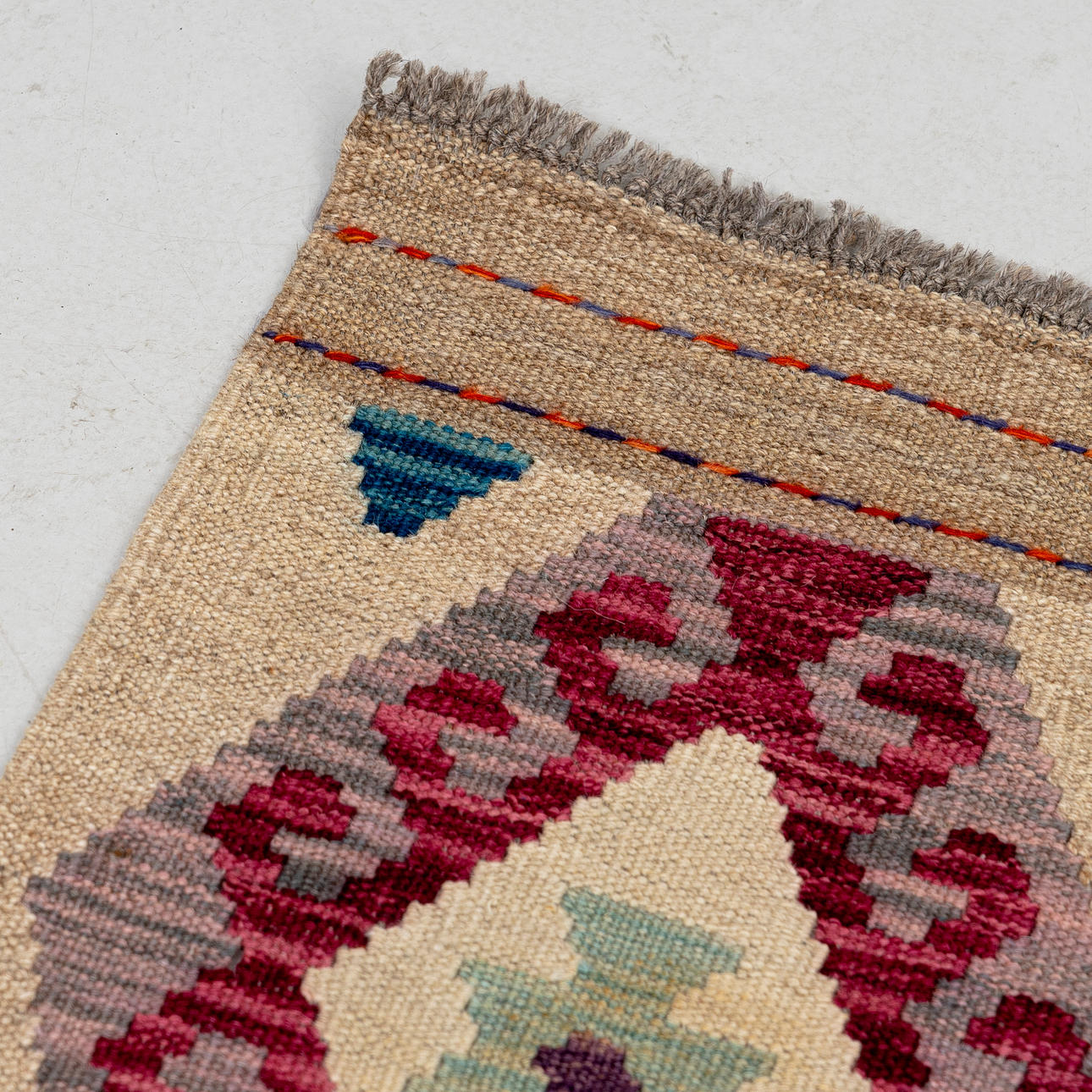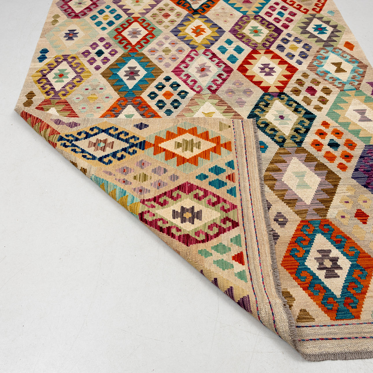 Polychrome geometric pattern, approx. 252x180 cm.