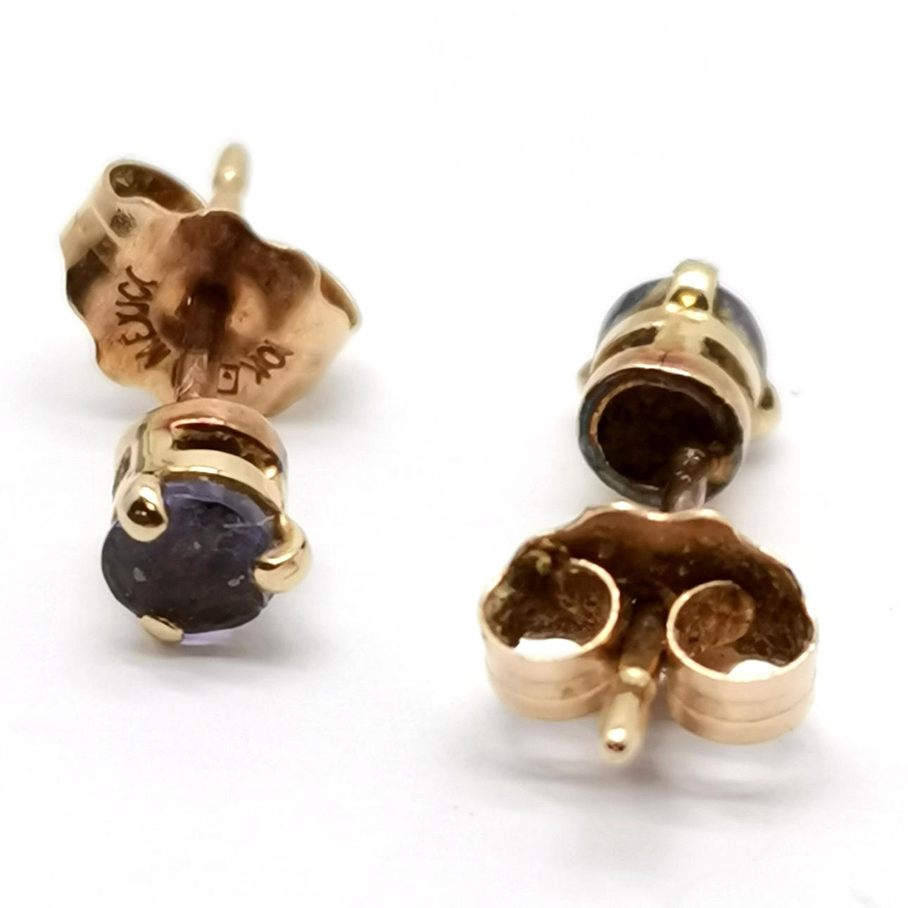 10ct marked gold blue stone set earrings - 0.4g total weight.