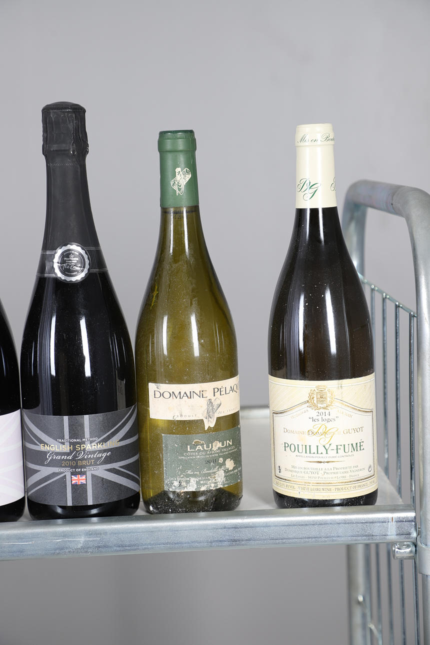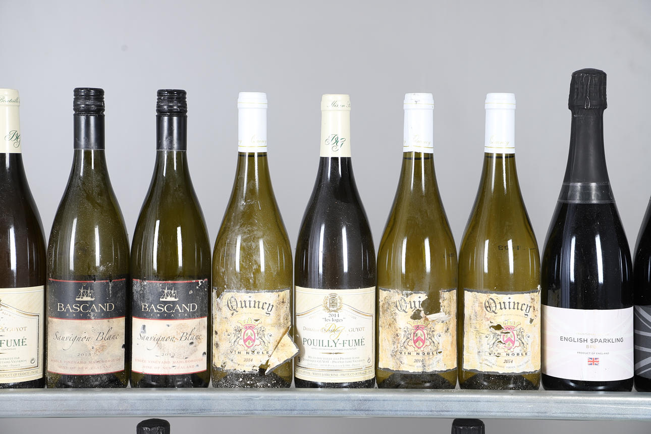 A quantity of white wine, to include 5 bottles of Domaine Dominique Guyot Pouilly-Fume (2014), 3 bottles of Bascand Estate Sauvignon Blanc (2013), 5 bottles of Quincy Vin Noble, Domaine Pelaquie Laudun, 5 bottles of English sparkling wine, and others etc. Size of largest, 32cm high. (21)