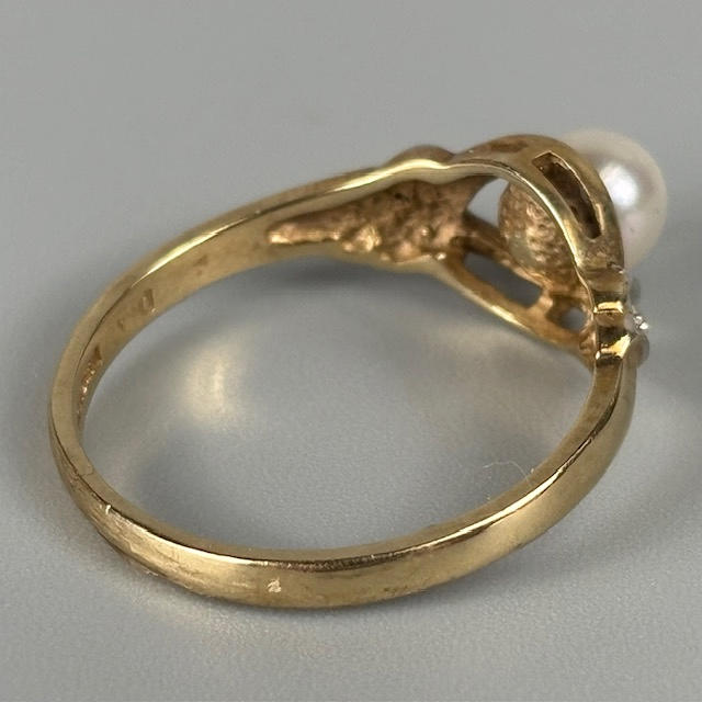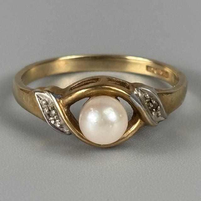 9CT GOLD PEARL SET RING.