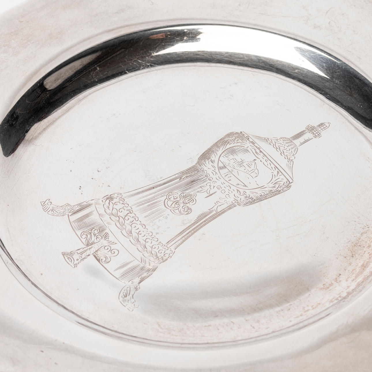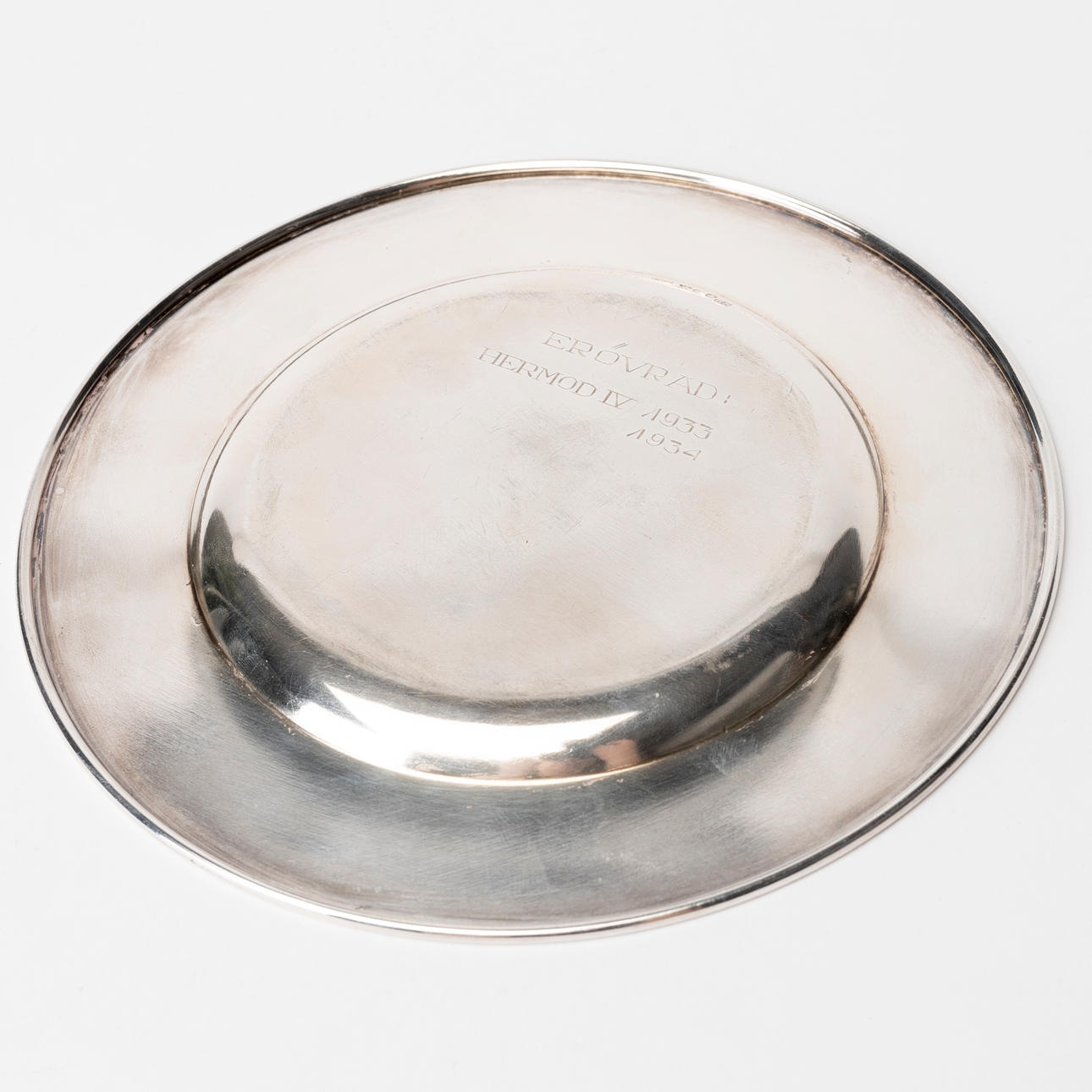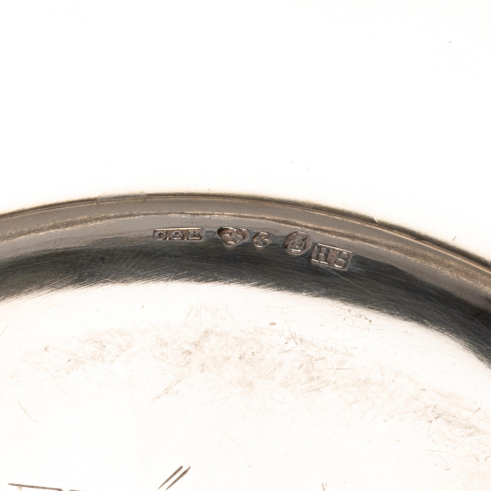 Engraved decor in the form of a trophy, diameter about 14 cm. Weight approx. 59 g.
