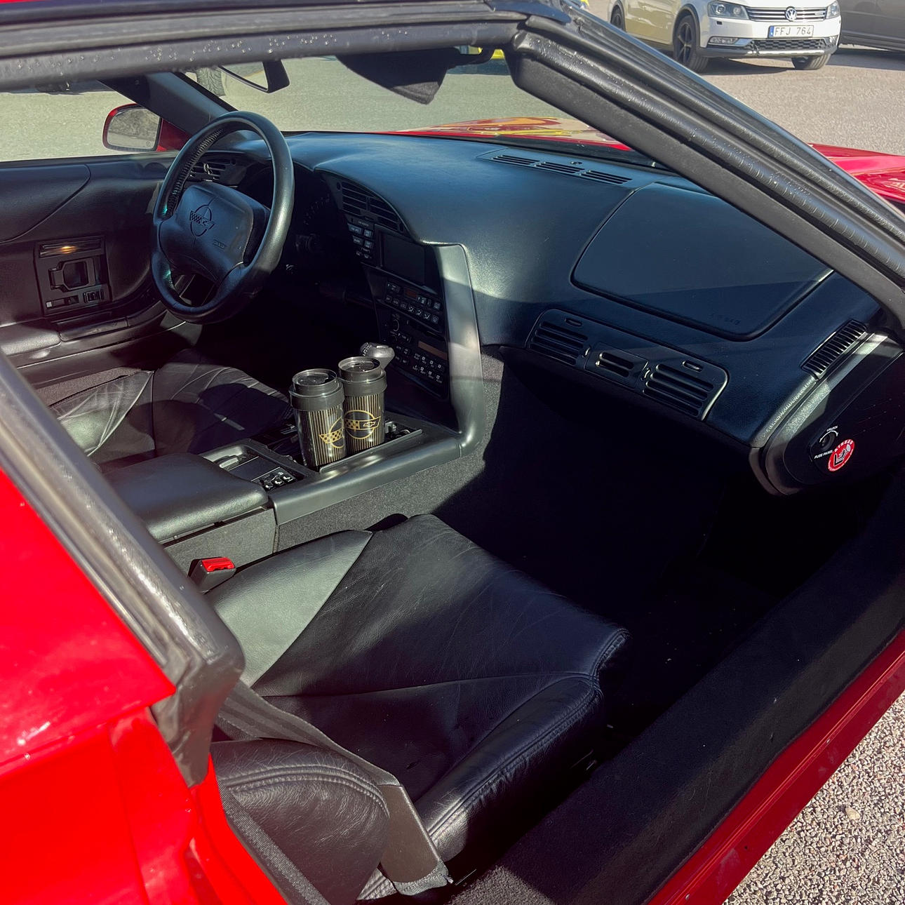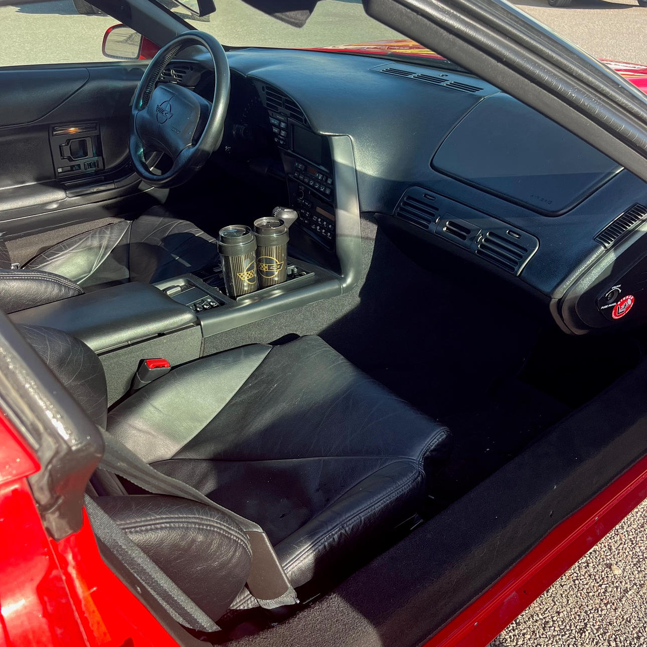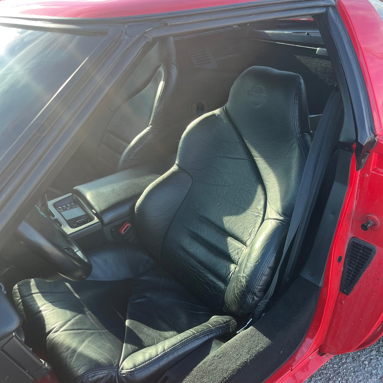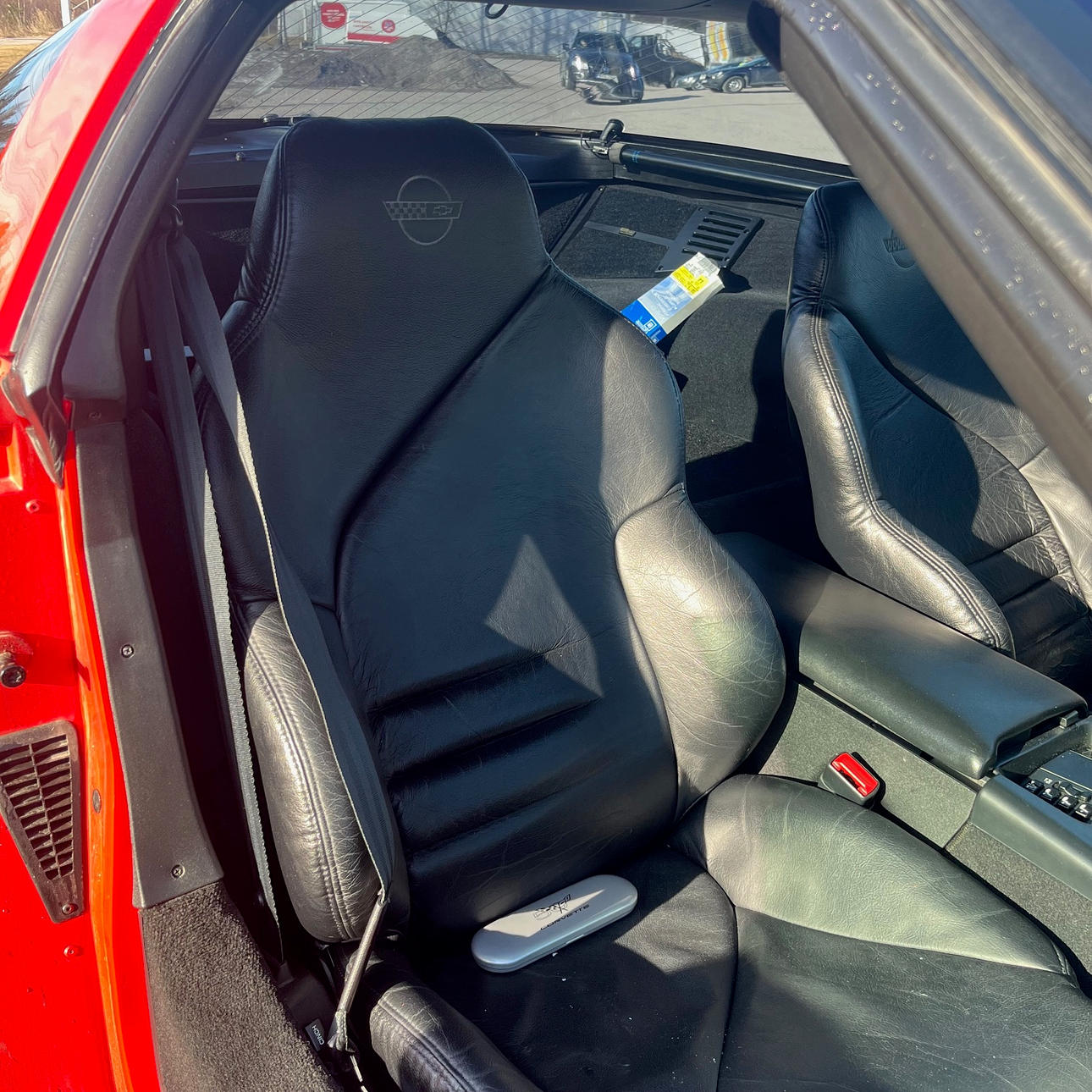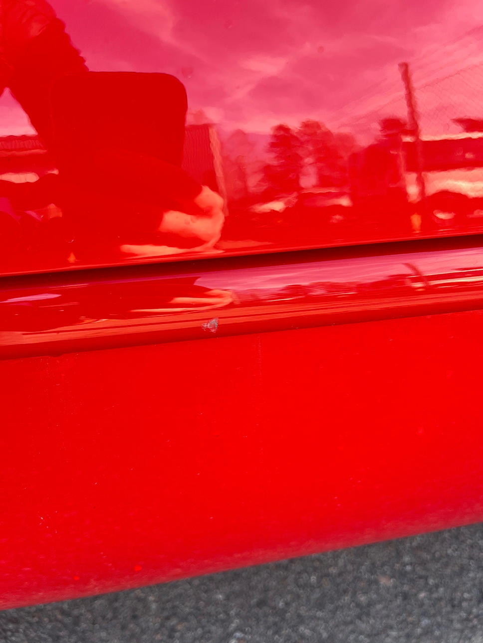 Missing a small piece of the strip on the right side exterior, also minor paint damage to the right door.