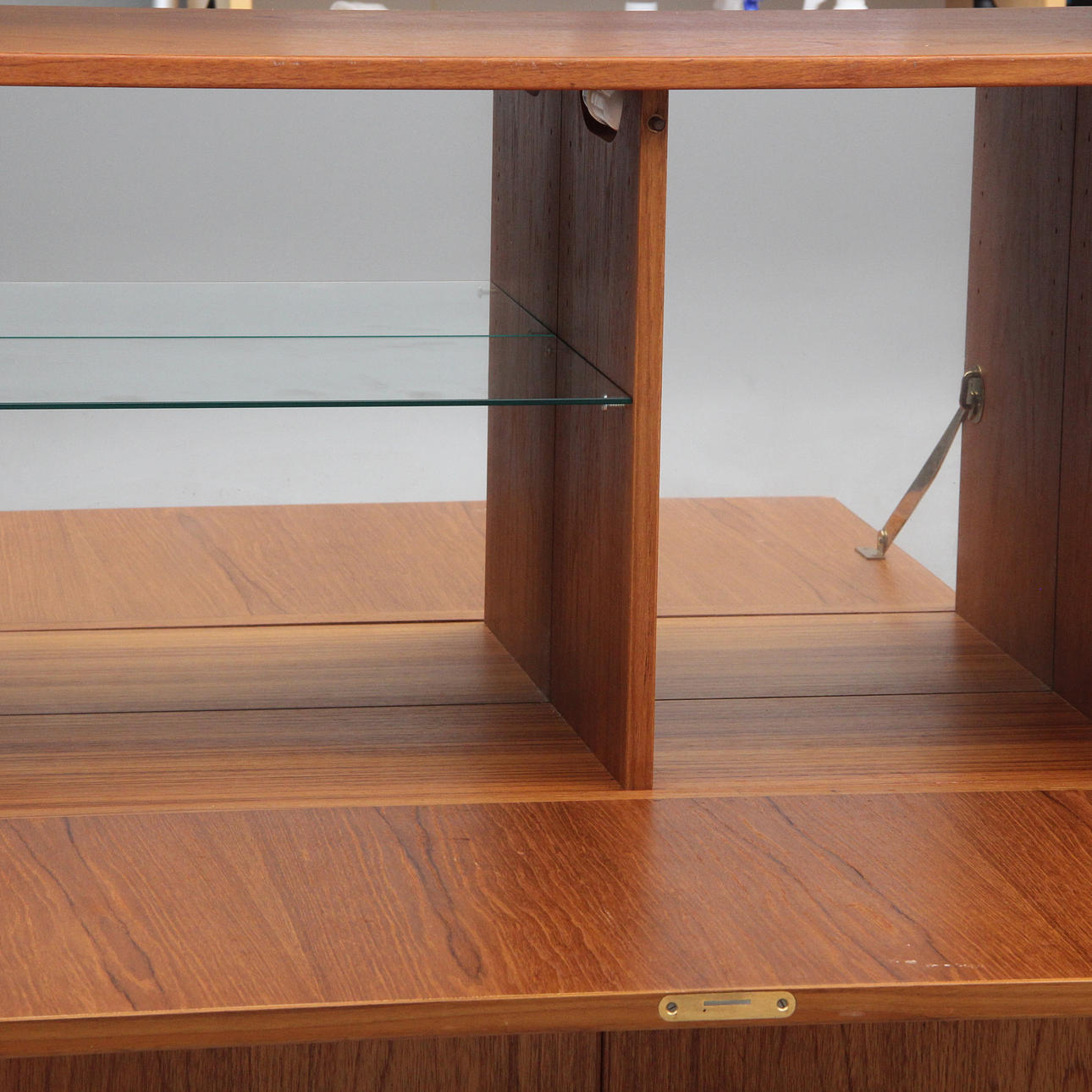 SHELF UNIT, teak, with cabinet section and glazed bar section, Skaraborg Möbelindustri Tibro, 1950s.