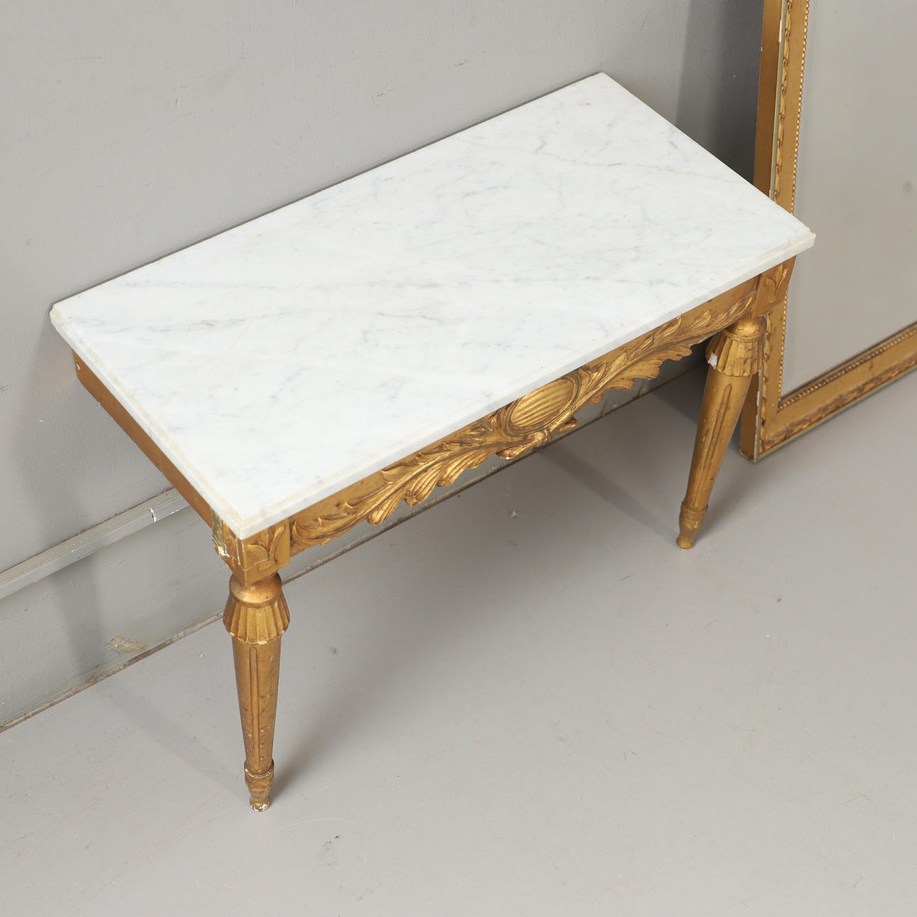 Mirror height 140, width 51 cm Console table length 61, width 30, height 45 cm.