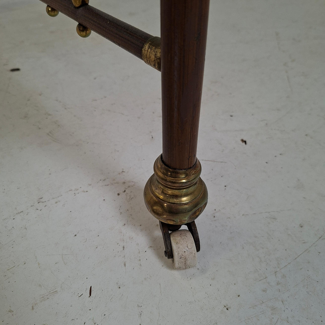 Painted, brass details, on casters.