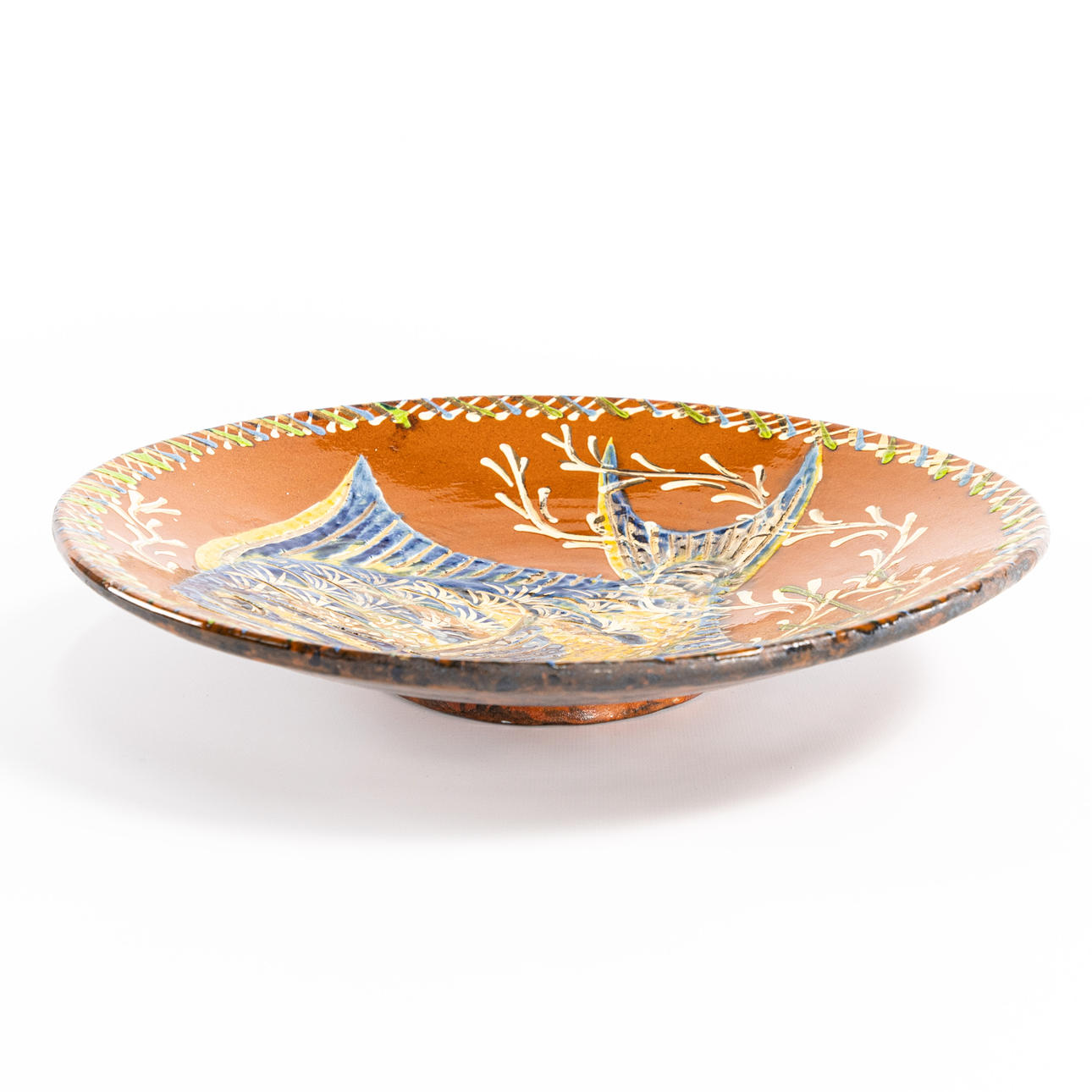 BOWL, earthenware, Italy, decorated with fish. Diameter 34 cm, height 6 cm.