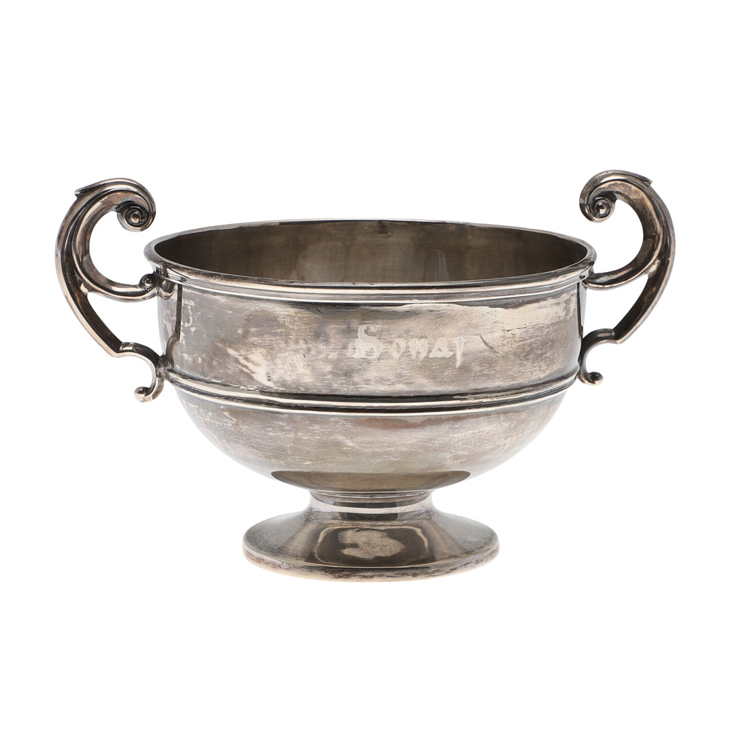 5022458. AN EDWARDIAN SILVER TWIN HANDLED TROPHY CUP.