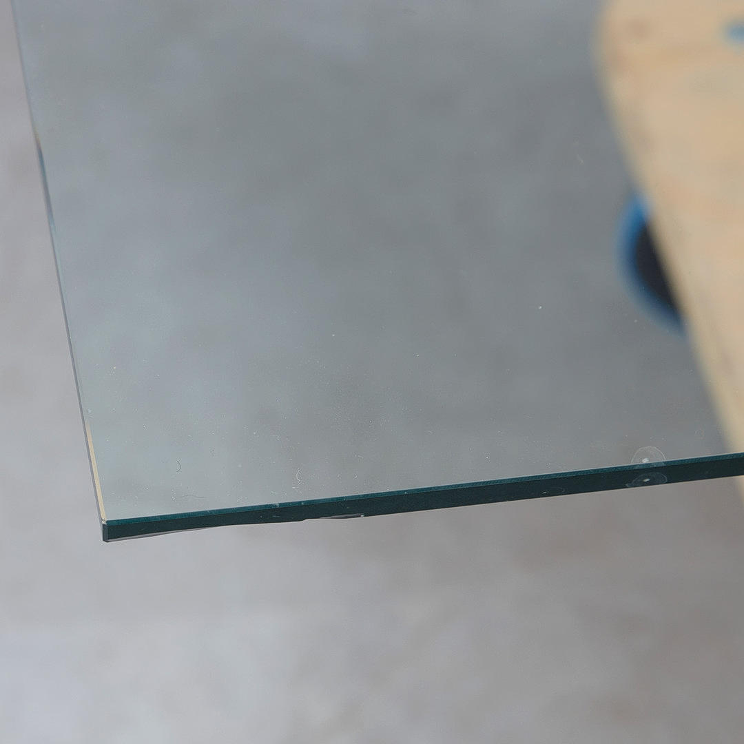 Age-appropriate signs of use and rubbing, scratches in places, edges of the glass table top partially scuffed and damaged.