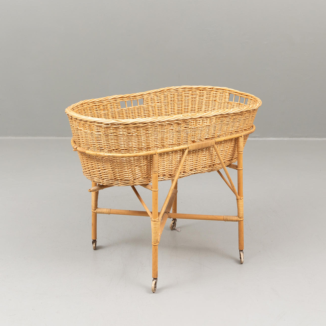 A wicker basket with base, mid 20th century.