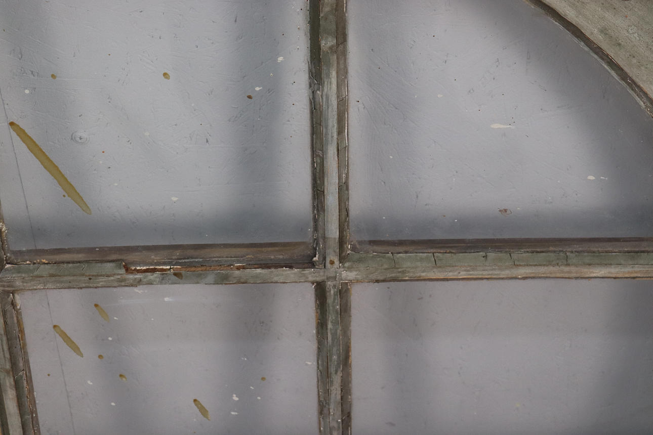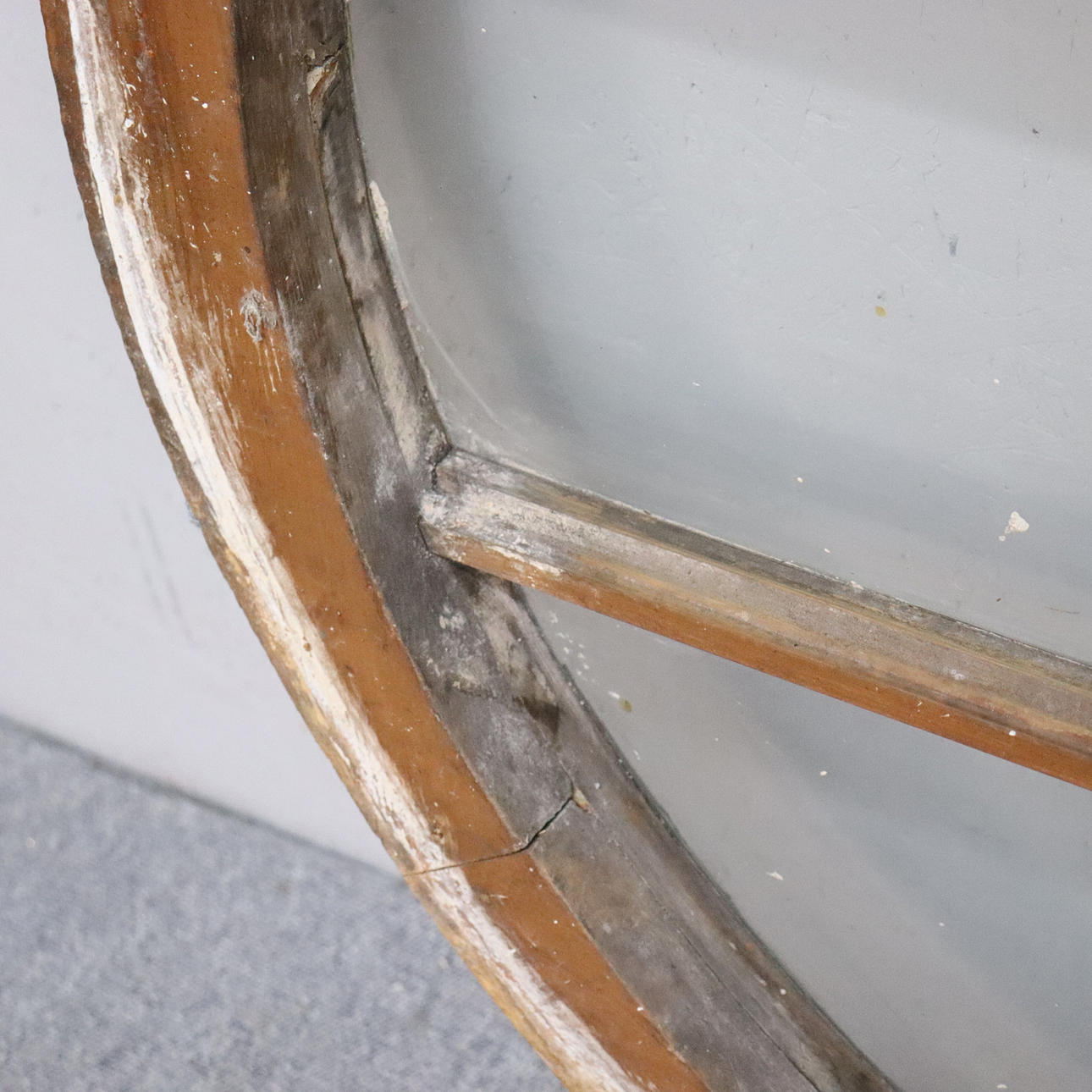Usage and age-related wear. A pane of glass is cracked.