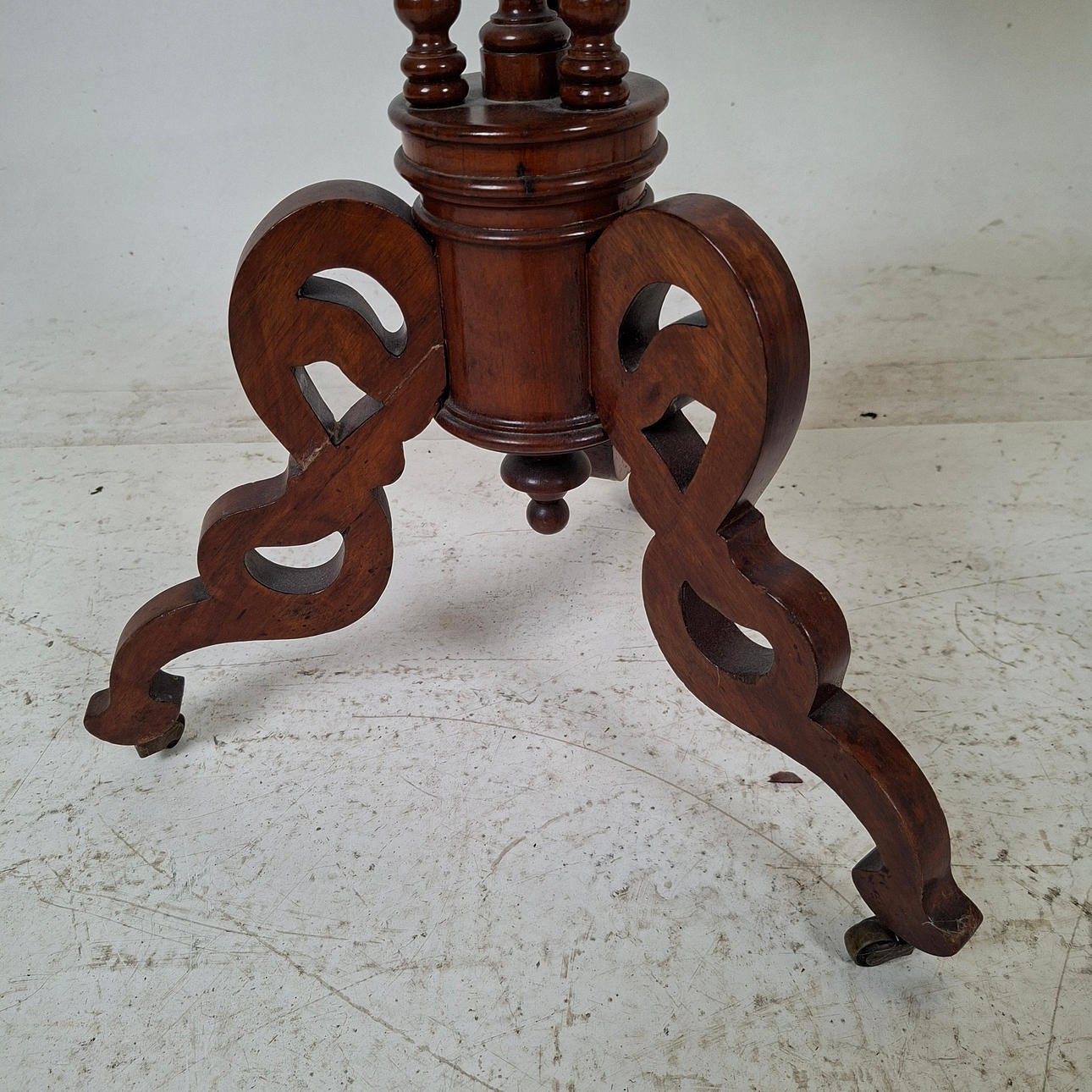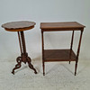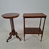 Table, 2 shelves, length approx. 53, width 32, height 75 cm. Pedestal table, diameter approx. 43, height 76 cm.