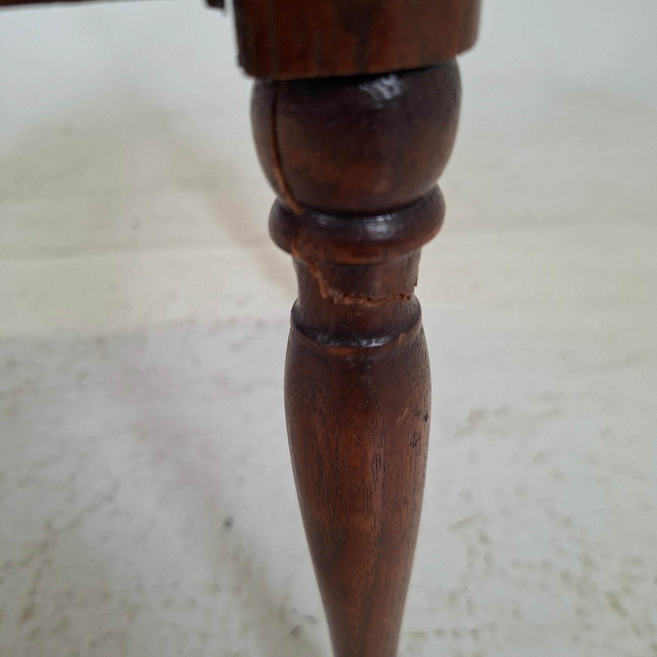 Scratches, stains, marks, cracks, repairs. One table with uneven legs.