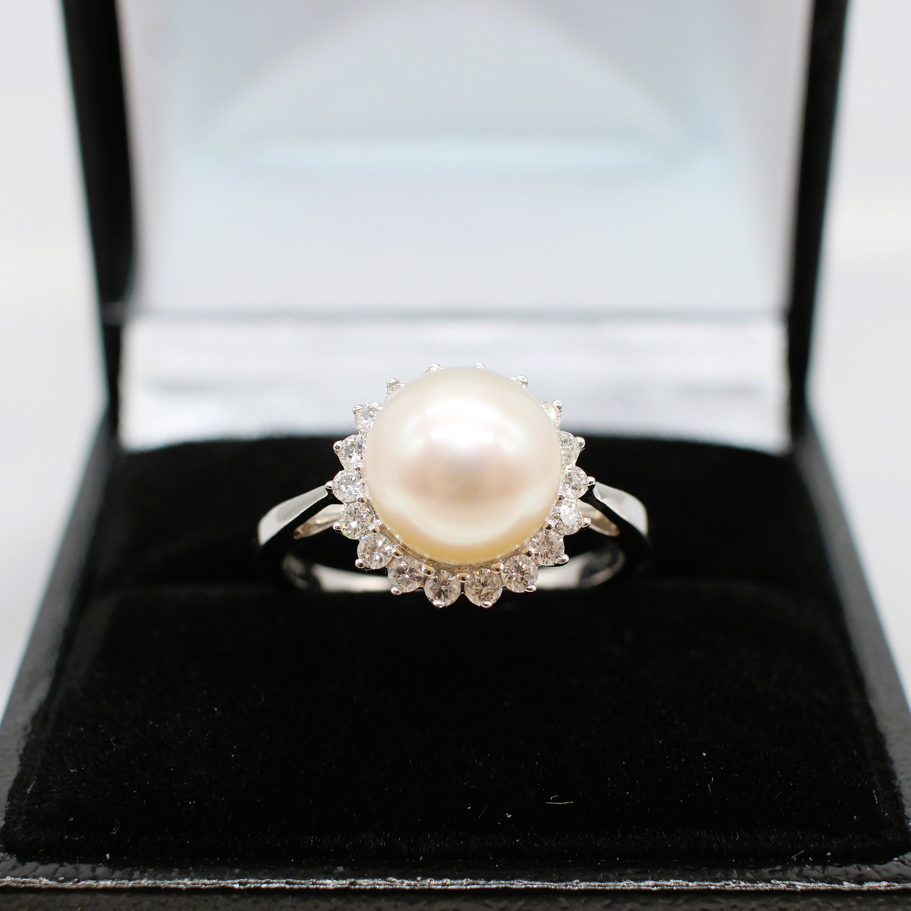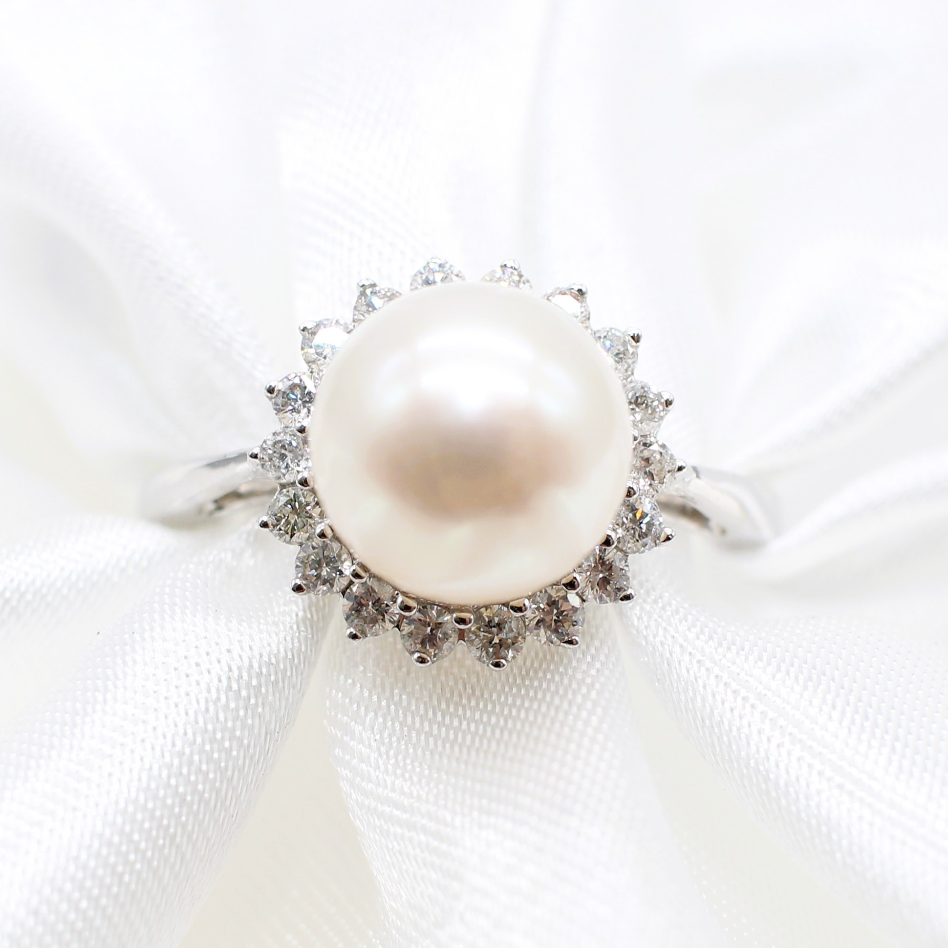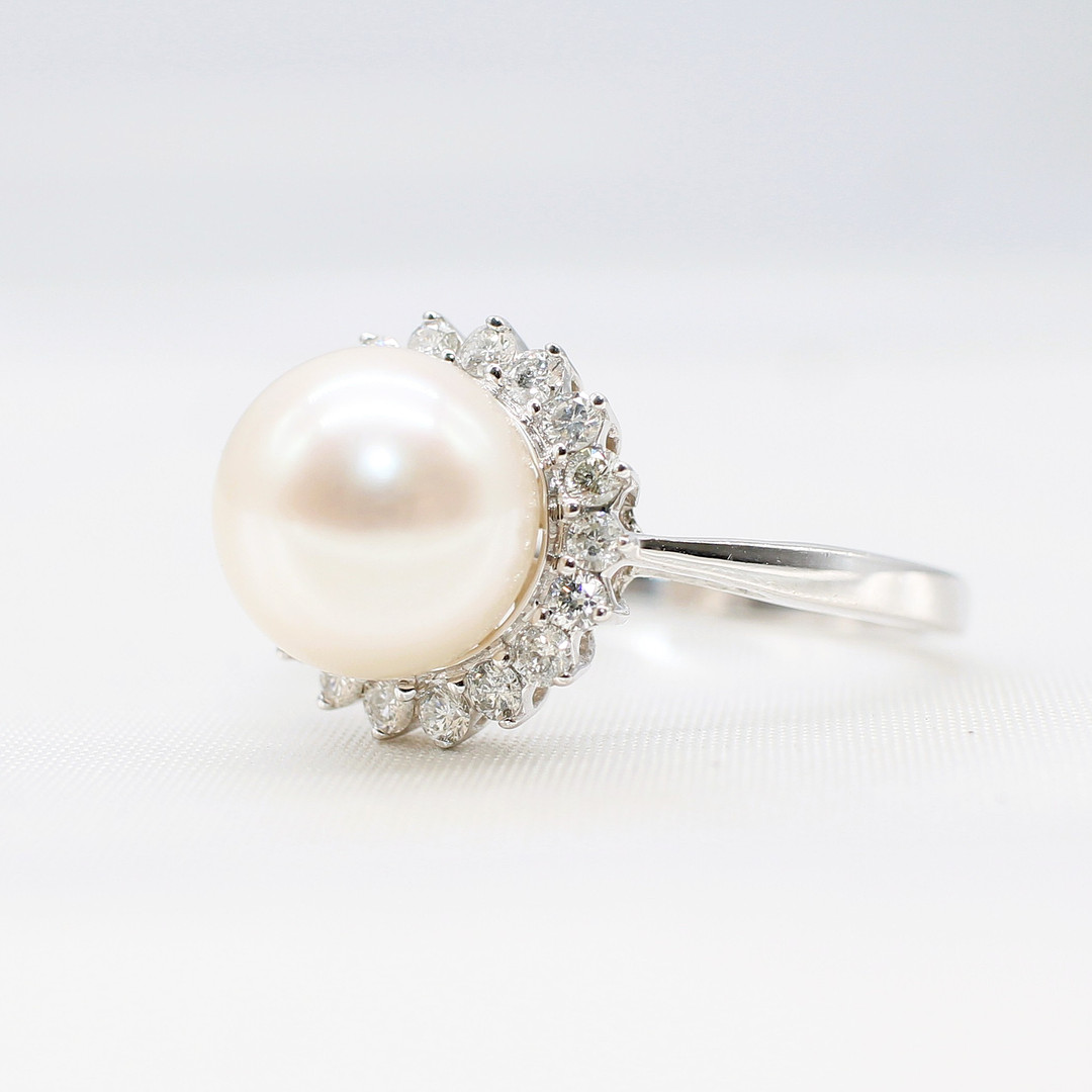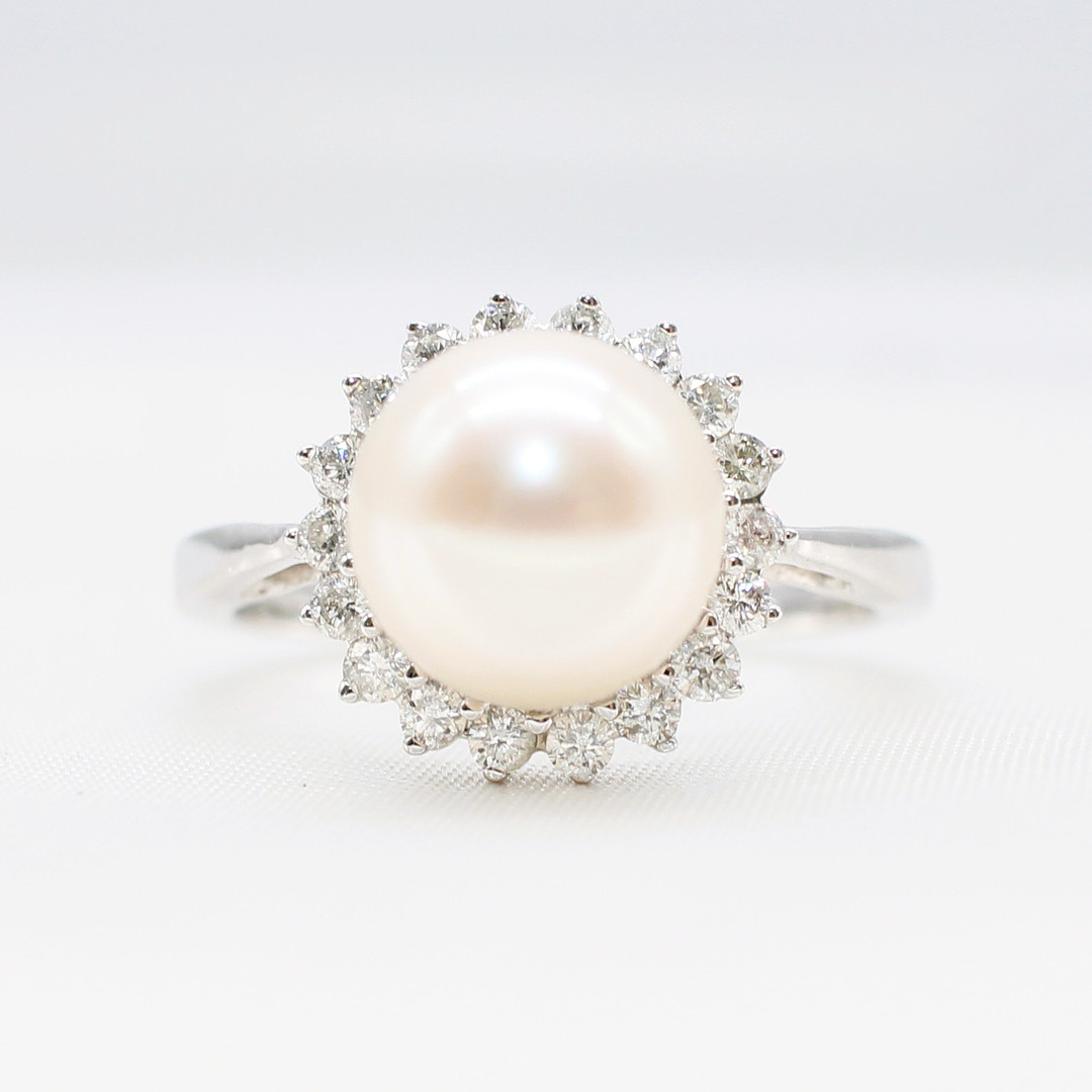 5022797. PEARL AND DIAMOND CLUSTER RING.