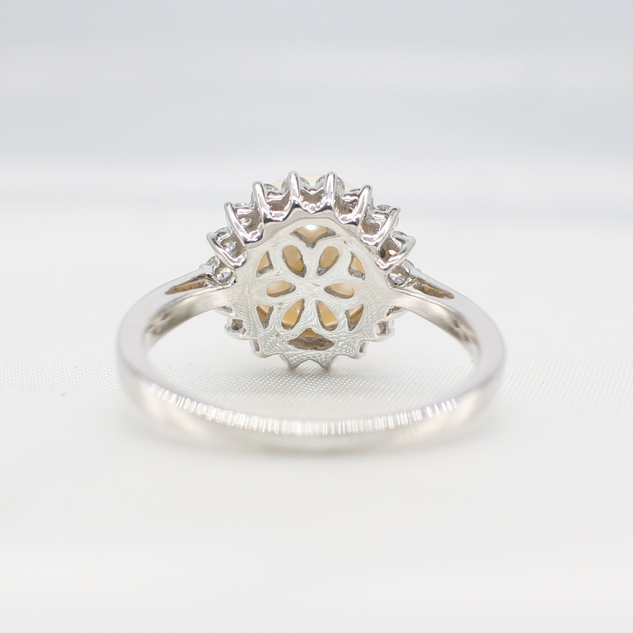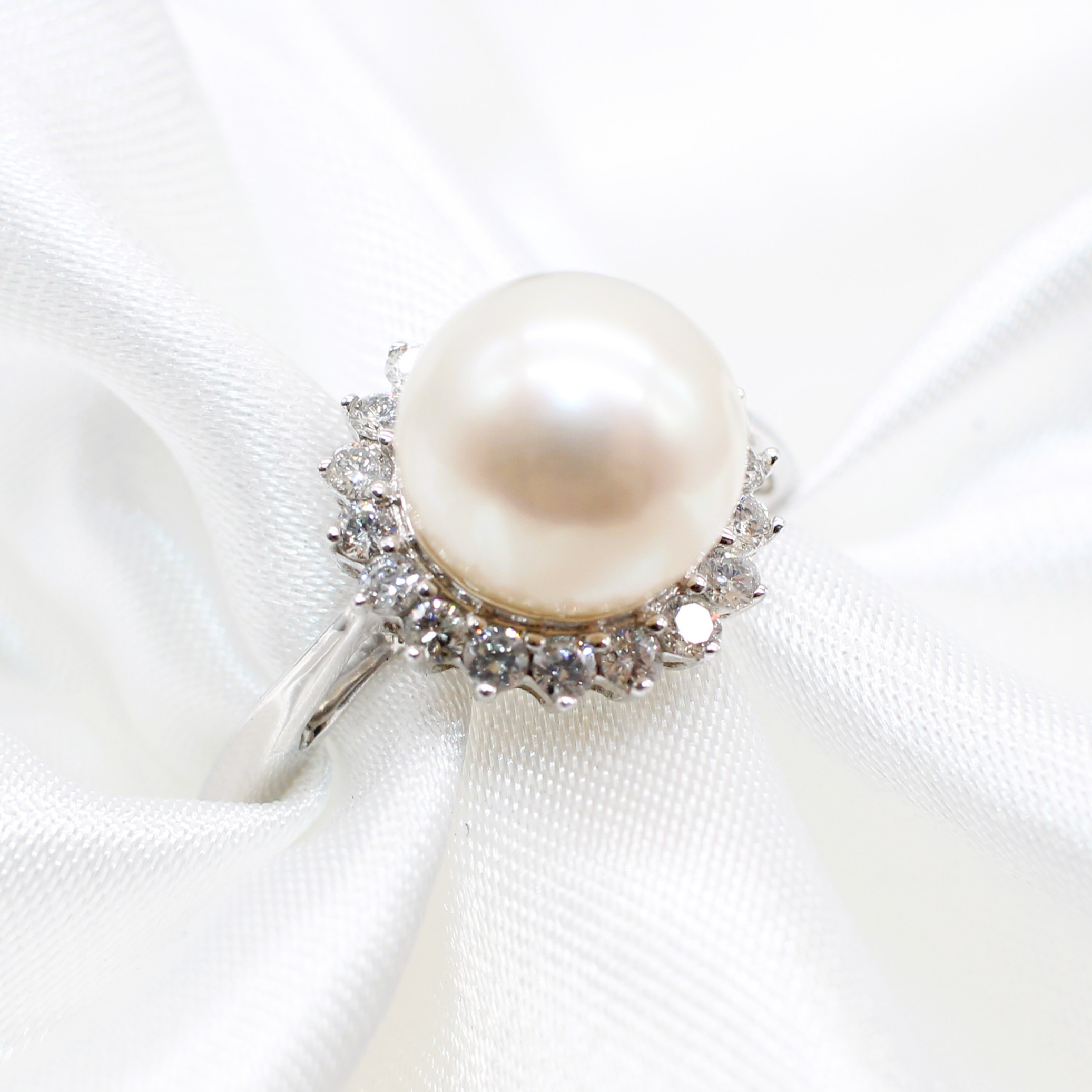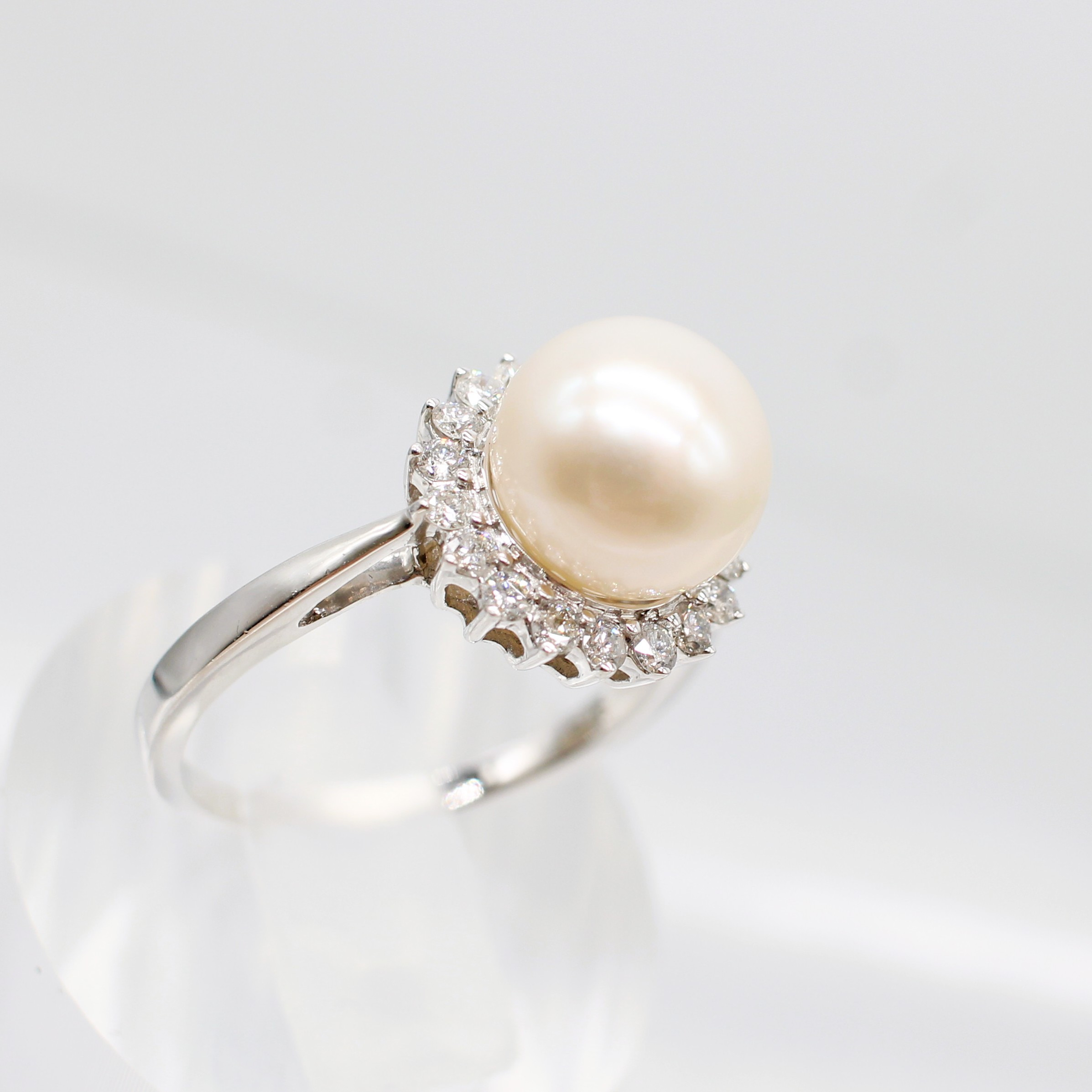 5022797. PEARL AND DIAMOND CLUSTER RING.