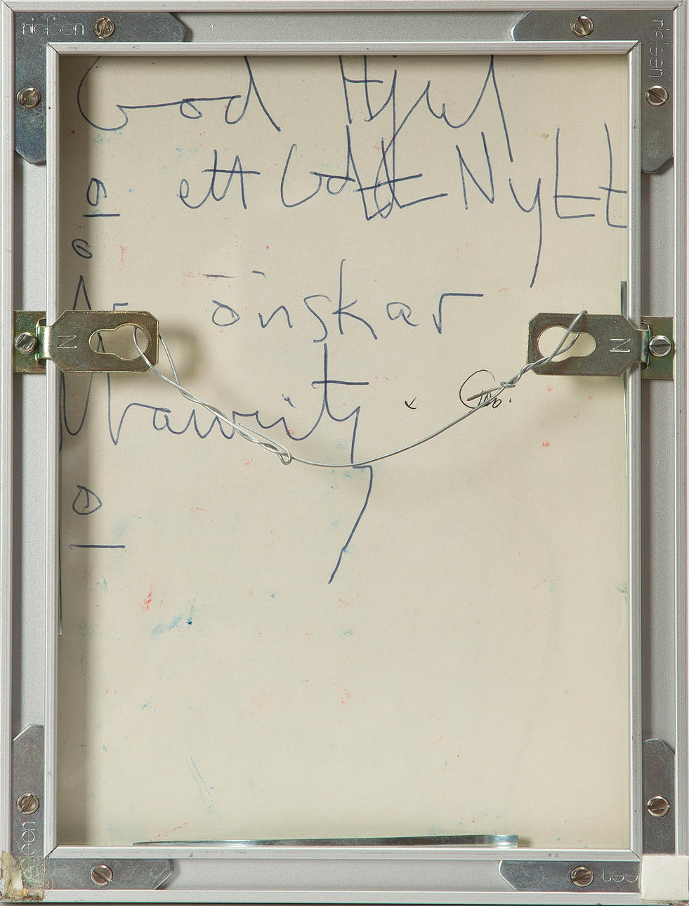 Pastel on paper, 20,5 x 14, including frame 21,5 x 15,5 cm. Signed Karström. Greeting on verso “Happy wheel and a happy new year wish Mauritz”.