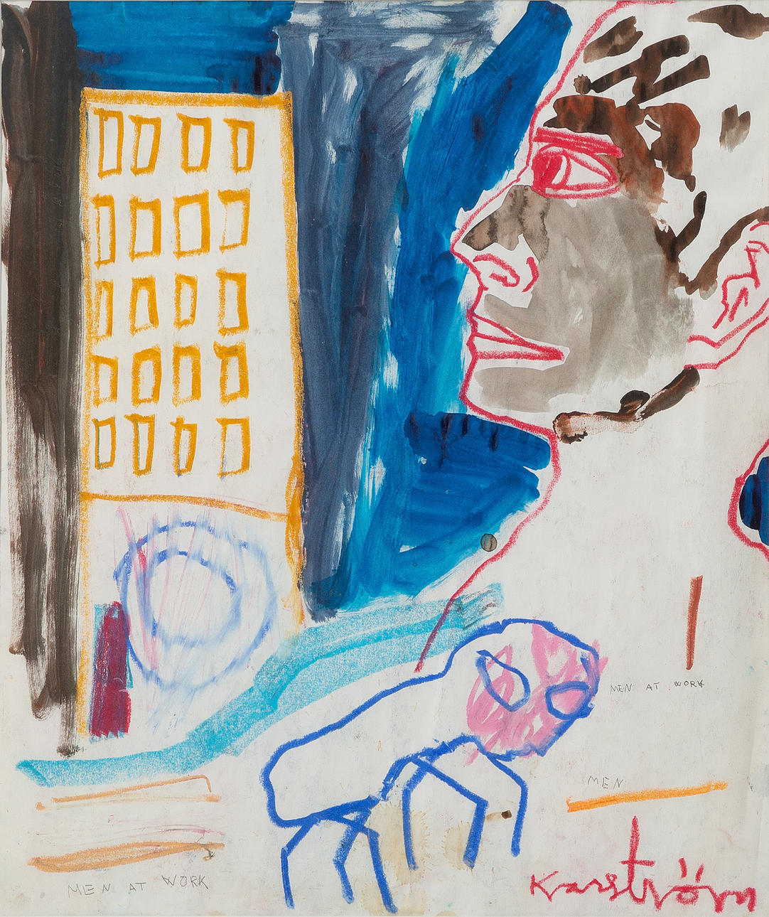 Mixed media on paper, 44 x 37, including frame 58 x 51 cm. Signed Karström.