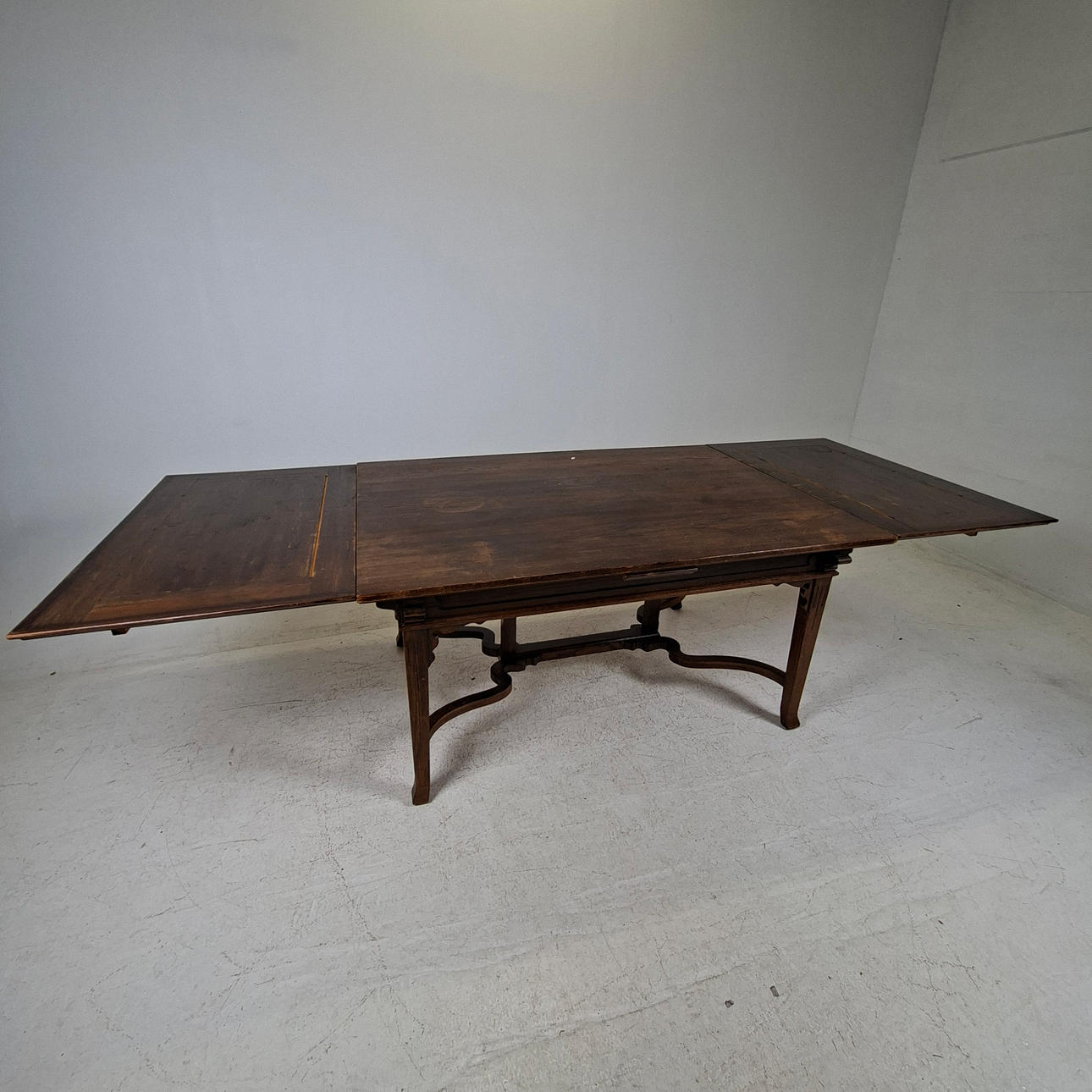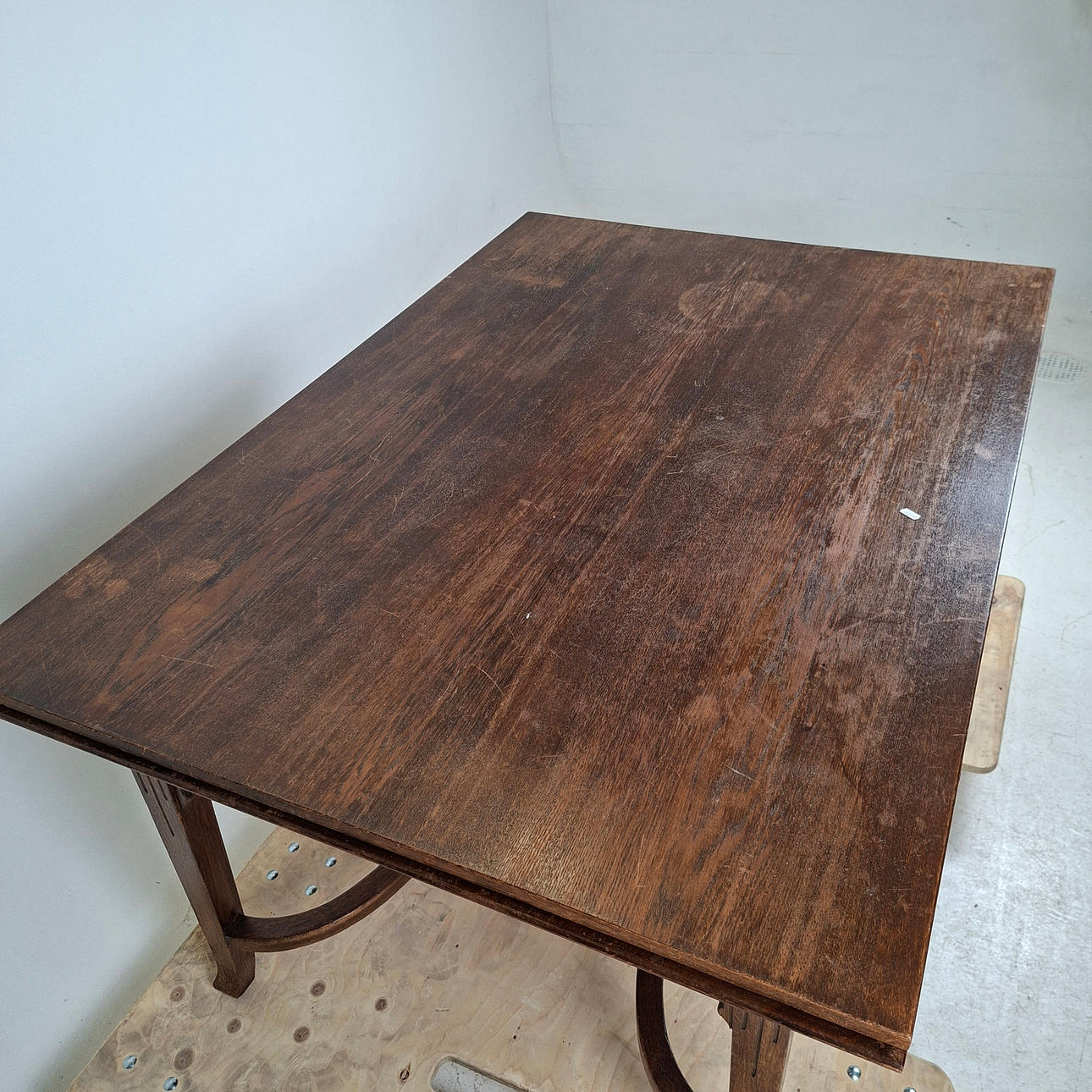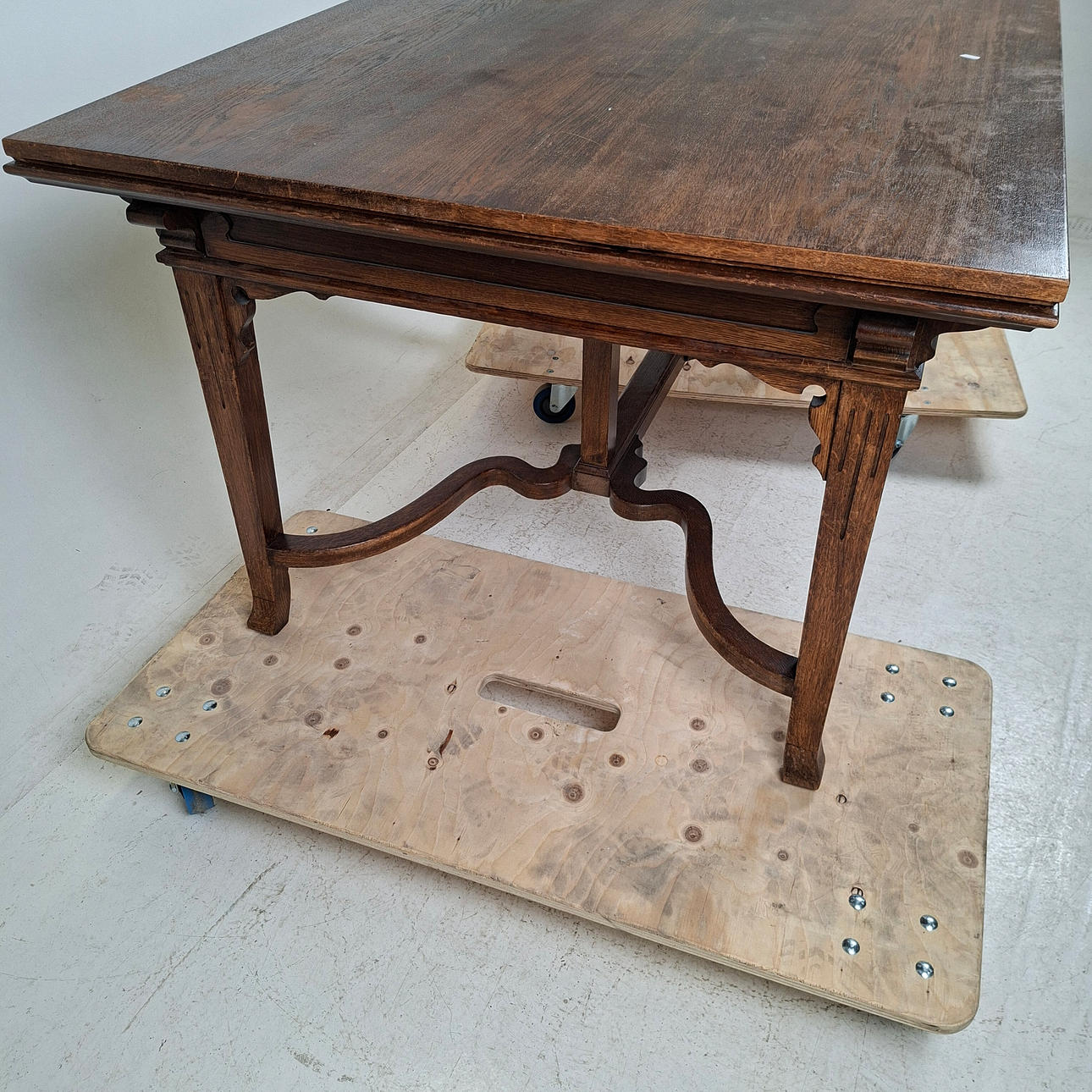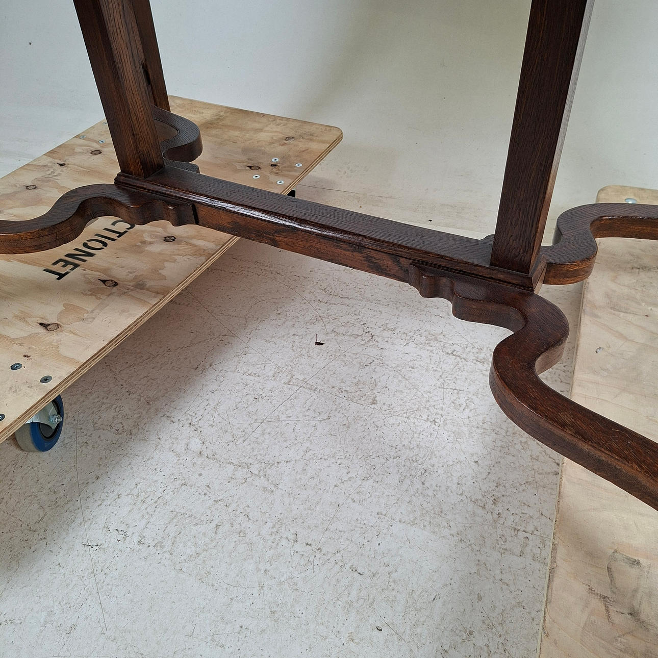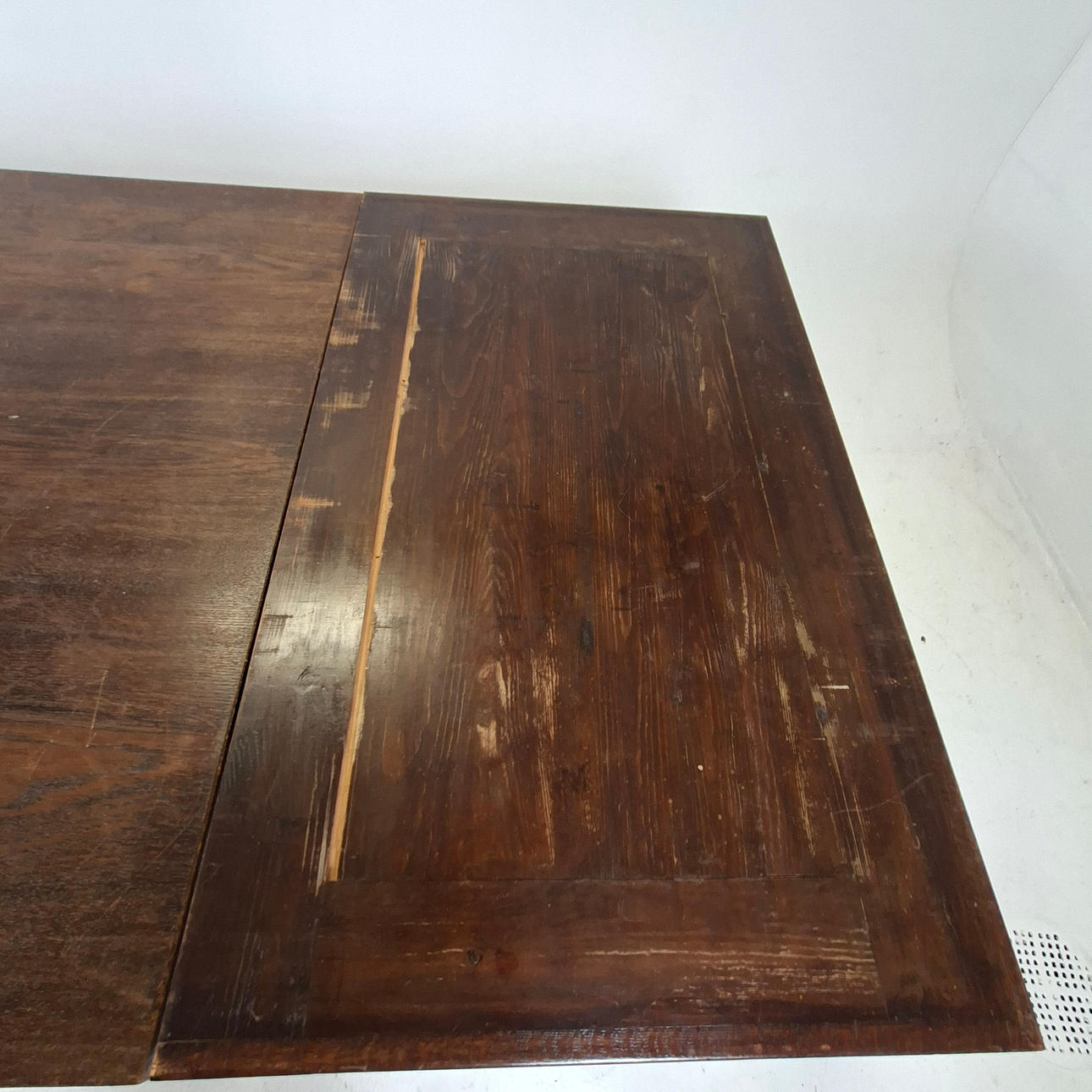 Wear, stains, veneer damage, one dowel on extension leaf defective.