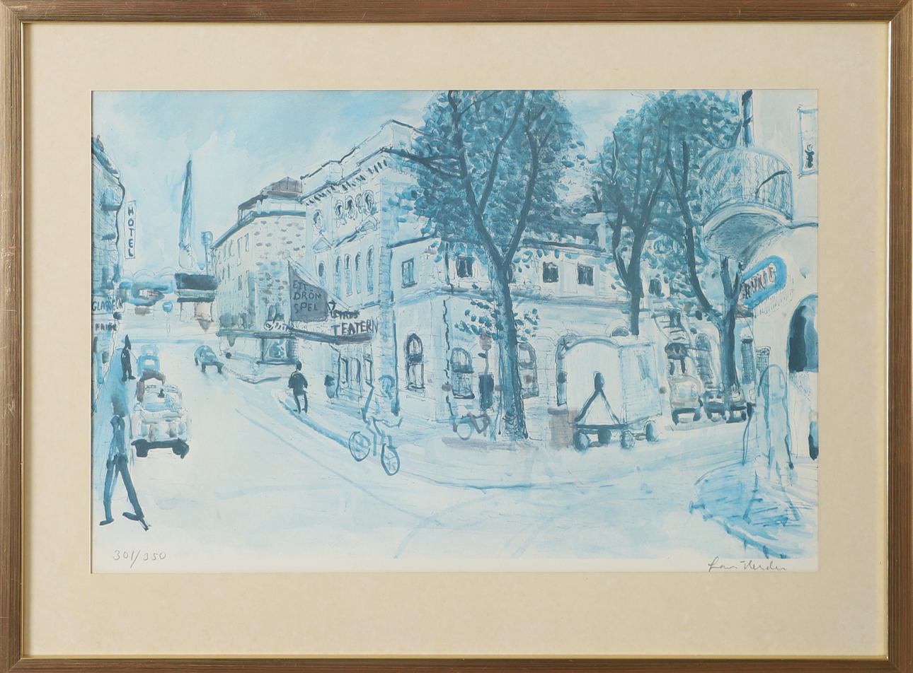 LARS HERDER. Gamla teatern Helsingborg, lithograph in colours, signed.