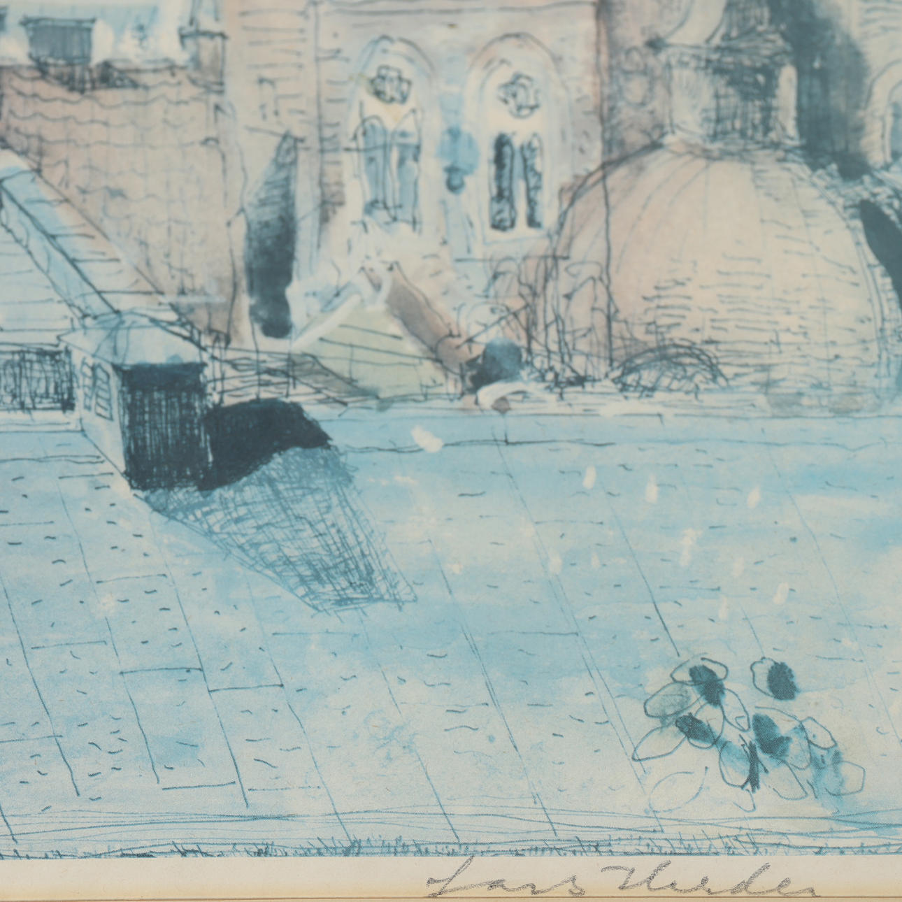 LARS HERDER. Helsingborg motif, lithograph in colours, signed.