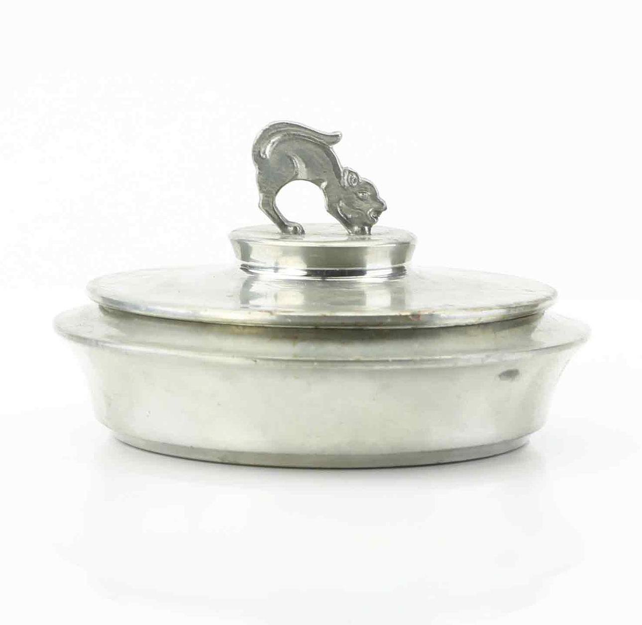 Lid bud in the shape of a cat. Diameter 10.5 cm.