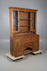 Probably late 19thc/early 20thc, in two sections, with a partially glazed top section with shelves in the centre, the base with three drawers flanked by two cupboards. 208cms high, baae 152cms across.